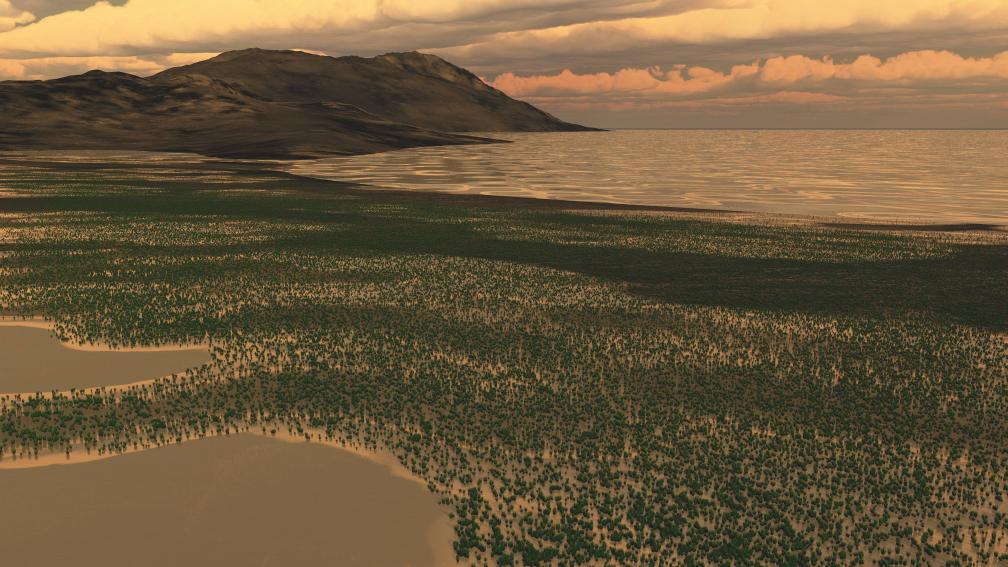 早三叠世“华夏植物群”灭绝后——草本石松类为主的植被系统。(邓珍珍 绘)