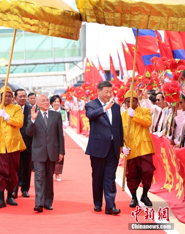 这是柬埔寨国王西哈莫尼登基以来,首次在机场为来访的外国元首举行隆重欢迎仪式,特别的安排展现出柬方对此访的高规格礼遇。