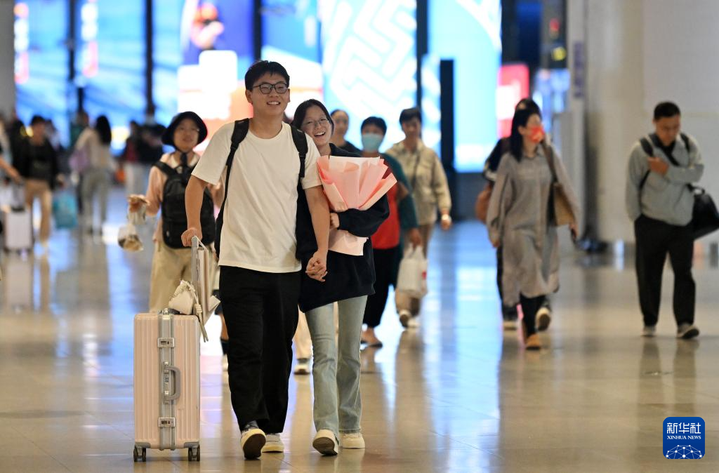 9月15日,旅客从天津西站出站。新华社记者 李然 摄