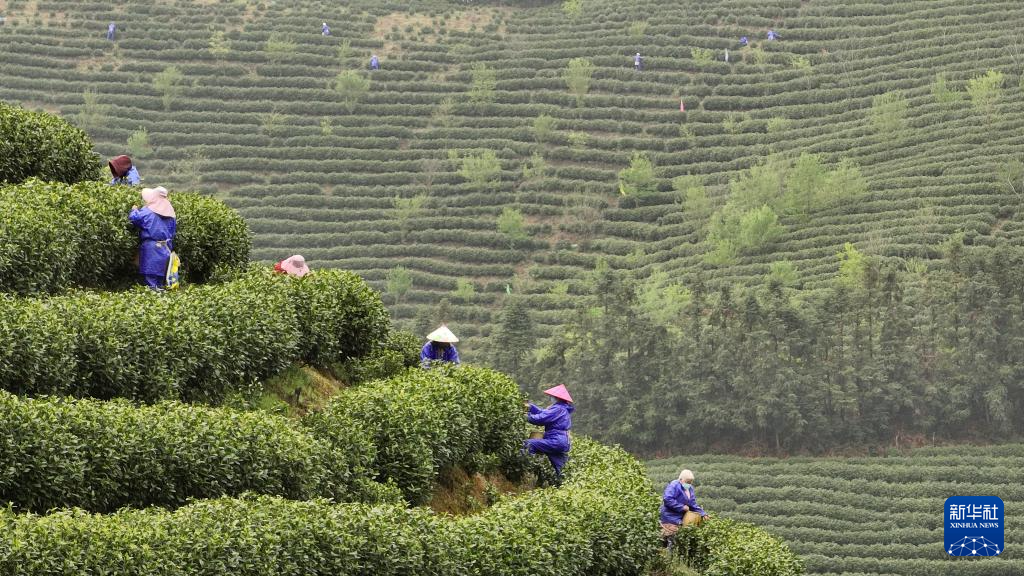 3月29日,四川省达州市通川区碑庙镇千口村茶农在采摘明前茶。新华社发(邓良奎 摄)
