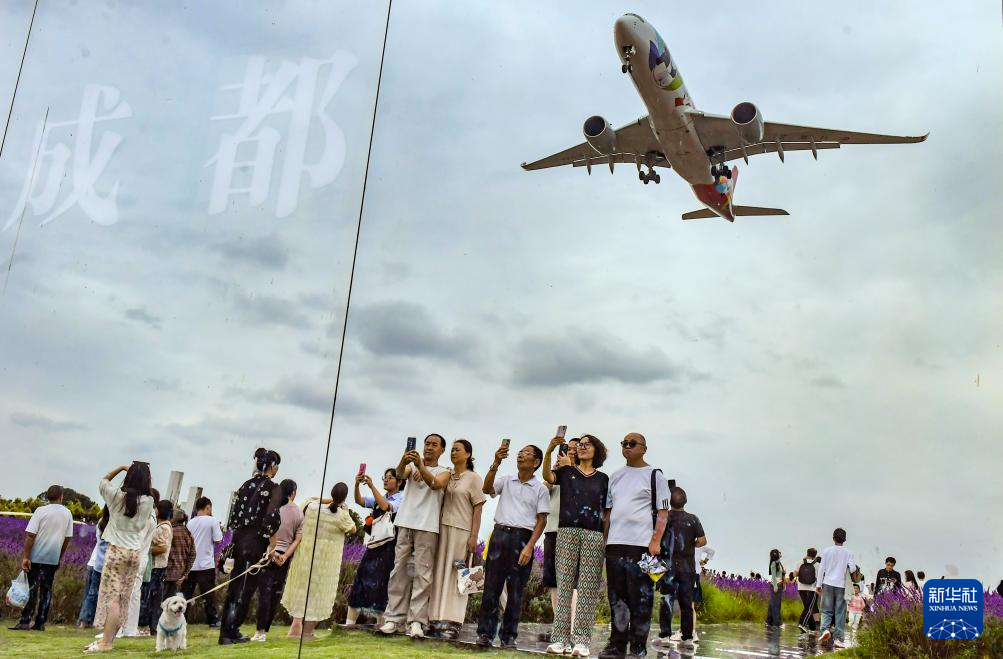 10月4日,在四川省成都市双流区空港花田,游客在一面镜子前拍照。新华社发(李向雨摄)