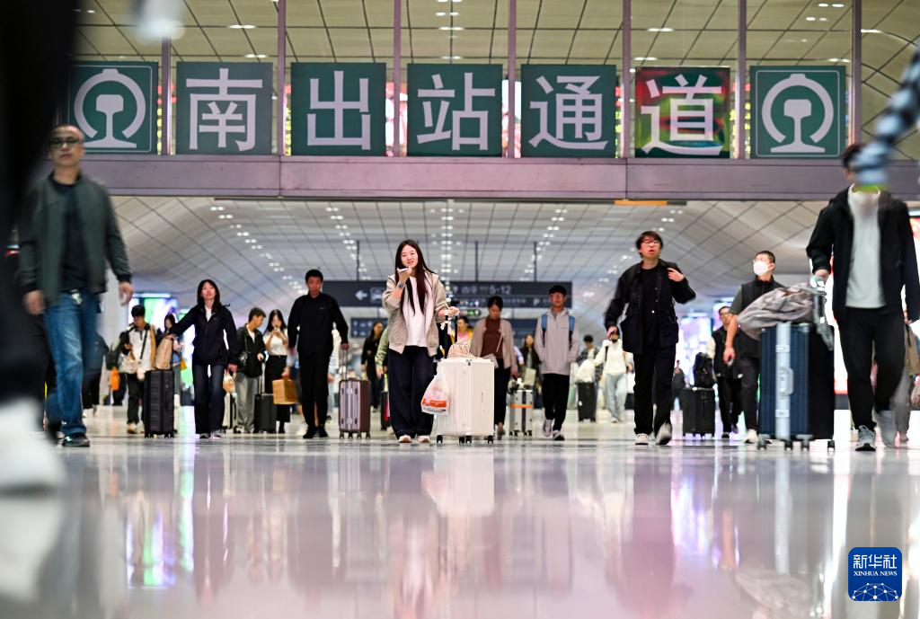 10月7日,旅客在南京火车站有序出站。新华社发(苏阳 摄)
