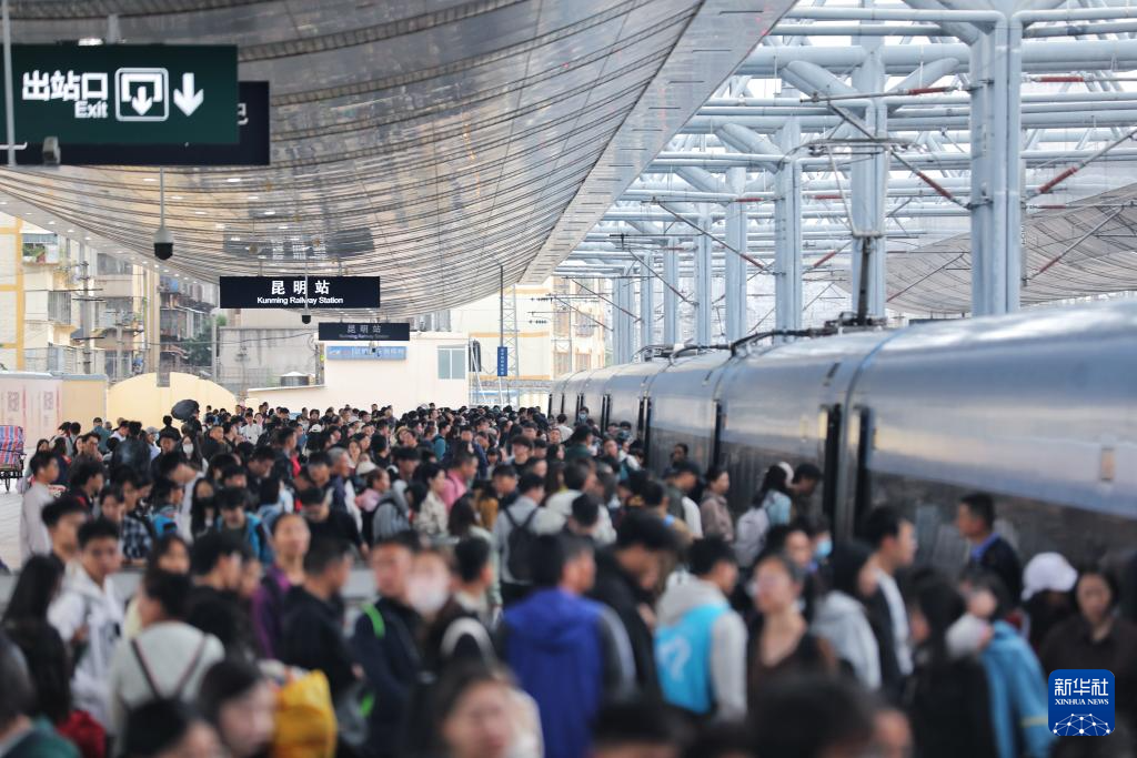 10月7日,旅客在昆明站乘车。新华社发(杨紫轩摄)