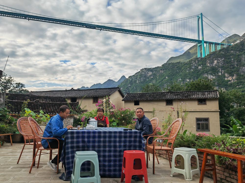 今年国庆假期,新的世界第一高桥——贵州花江峡谷大桥成为热门打卡地,桥下的贞丰县平街乡花江村也迎来旅游热。自媒体博主谢朝卿在村里租用的这处民房因抬头就能看桥景,不少人慕名而来。