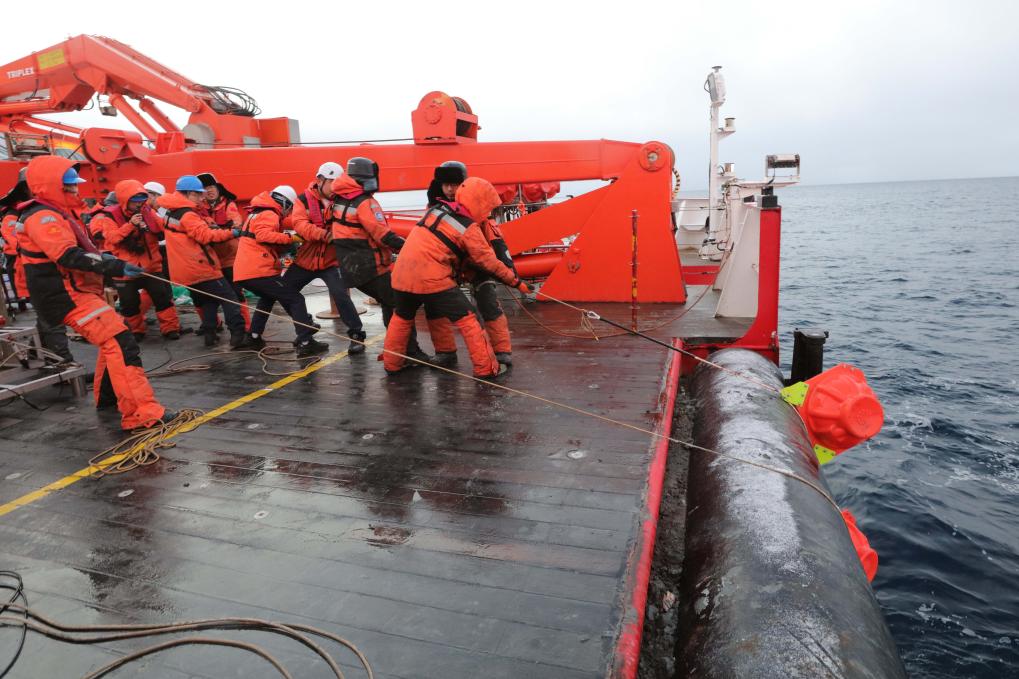 11时许,任健收起释放设备暂停搜索。考察队决定,待下一项目完成后,“雪龙2”号晚上再回来做最后的尝试。