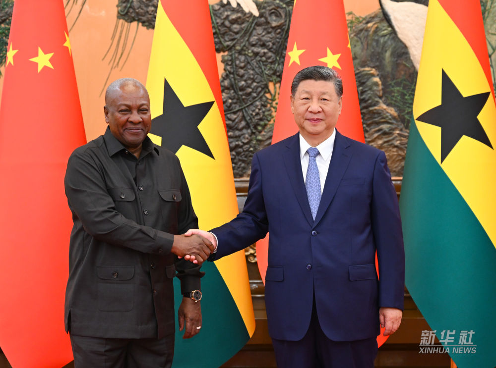 10月14日上午,国家主席习近平在北京人民大会堂会见来华出席全球妇女峰会的加纳总统马哈马。