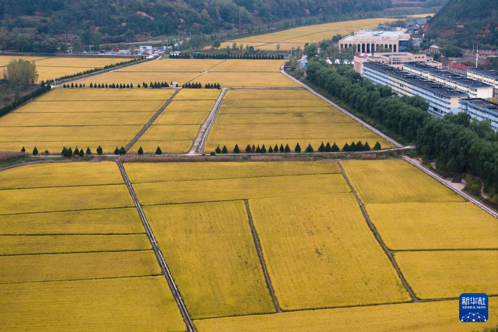 这是10月16日拍摄的南泥湾稻田景色(无人机照片)。新华社记者 邵瑞 摄