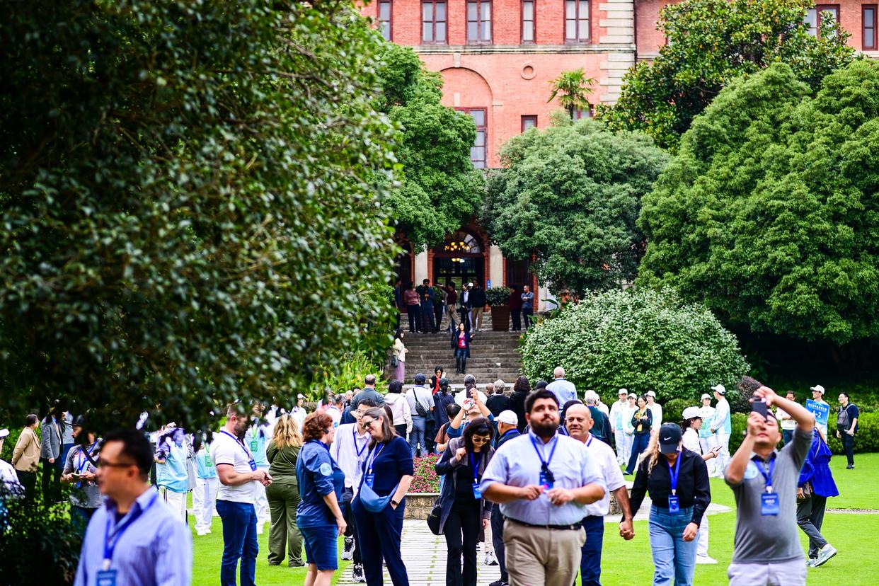 10月25日,参加第七届中美友城大会的嘉宾参访位于杭州市的浙江大学之江校区。新华社记者 江汉 摄
