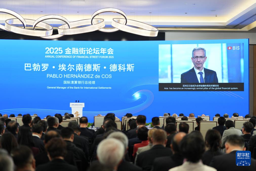 10月27日,在2025金融街论坛年会开幕式上,国际清算银行总经理巴勃罗·埃尔南德斯·德科斯发表视频主题演讲。新华社记者 鞠焕宗 摄