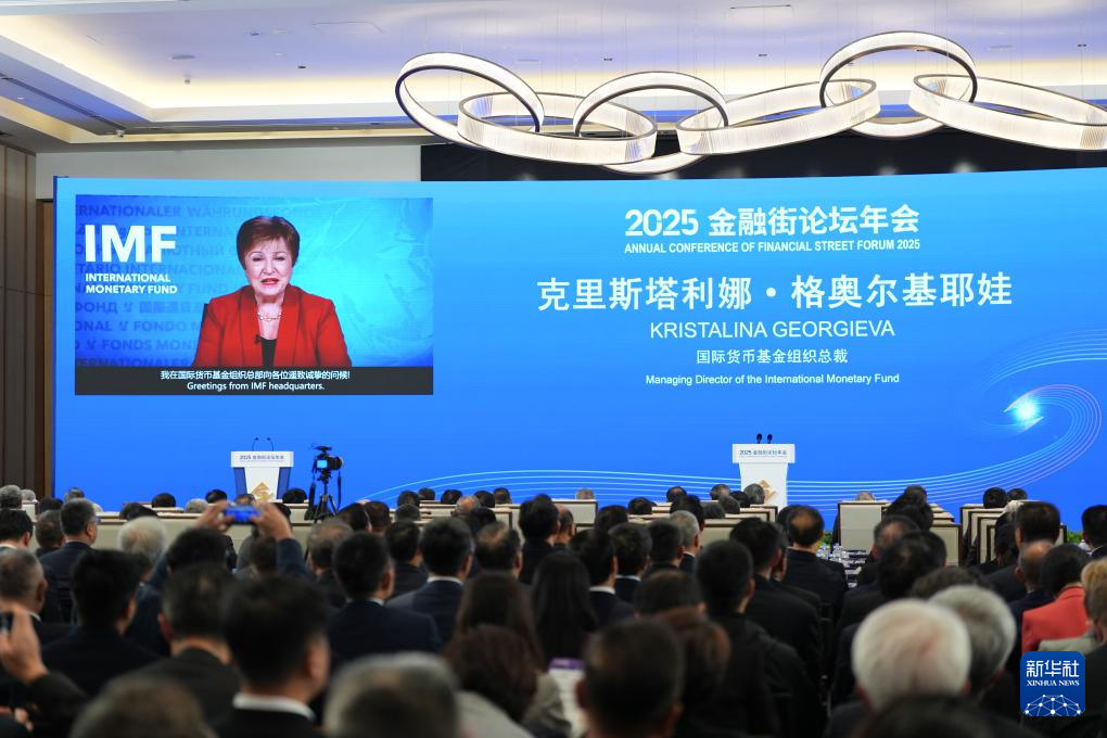10月27日,在2025金融街论坛年会开幕式上,国际货币基金组织总裁克里斯塔利娜·格奥尔基耶娃发表视频主题演讲。新华社记者 鞠焕宗 摄