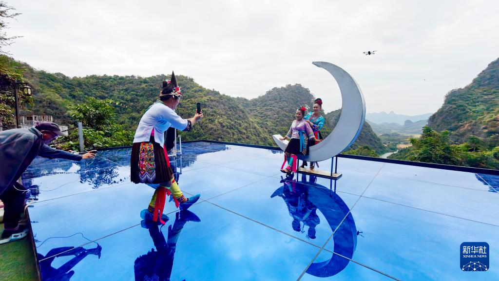 11月1日,在广西柳州市融安县大良镇石门仙湖,游客在景区内游玩。新华社发(谭克兴 摄)