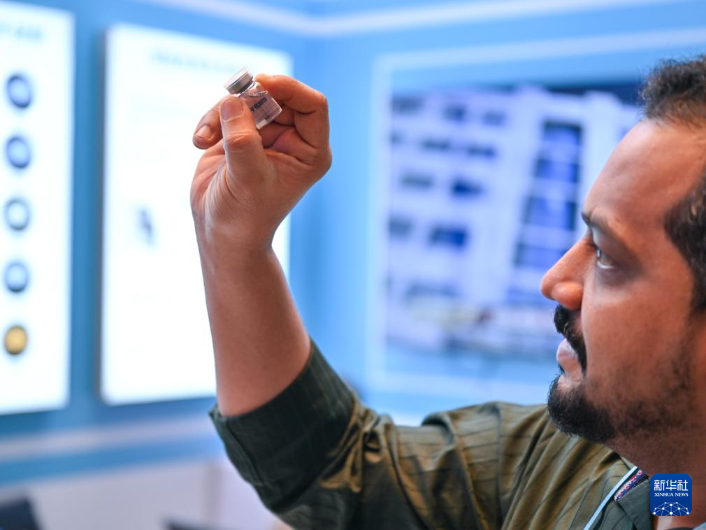 11月3日,观众在广交会展馆捷诺飞生物展台观看生物3D打印的样品。新华社记者 肖恩楠 摄