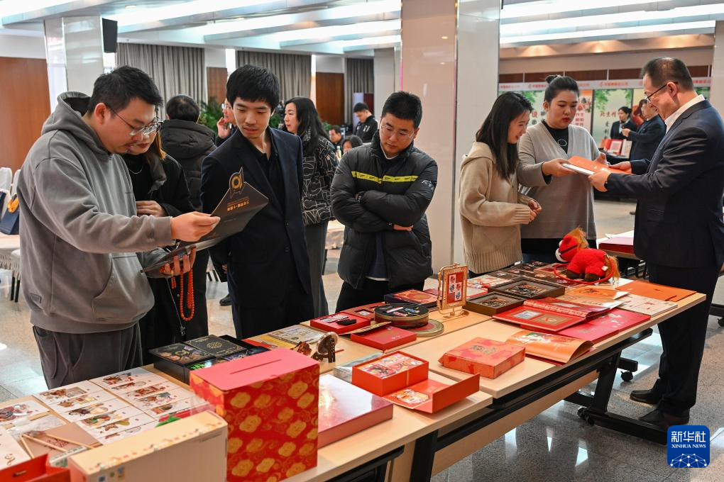 1月29日,活动参与者在现场了解生肖文化年节礼品。新华社记者 李鑫 摄