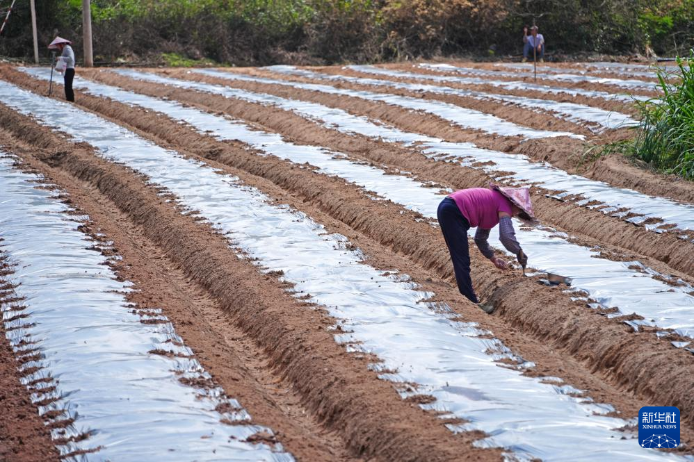 初春时节,广西南宁市邕宁区蒲庙镇村民忙着春耕春管,田园里一派繁忙景象。