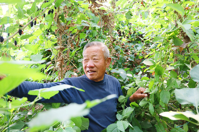 桑葚作为一种药食两用的水果,酸甜多汁,让人口舌生津,深得居民喜爱。据大棚负责人葛钦介绍,通过近年来的不断摸索,他已经掌握了科学施肥、剪枝等关键种植技术,今年的桑葚不仅挂果多、口感香甜。