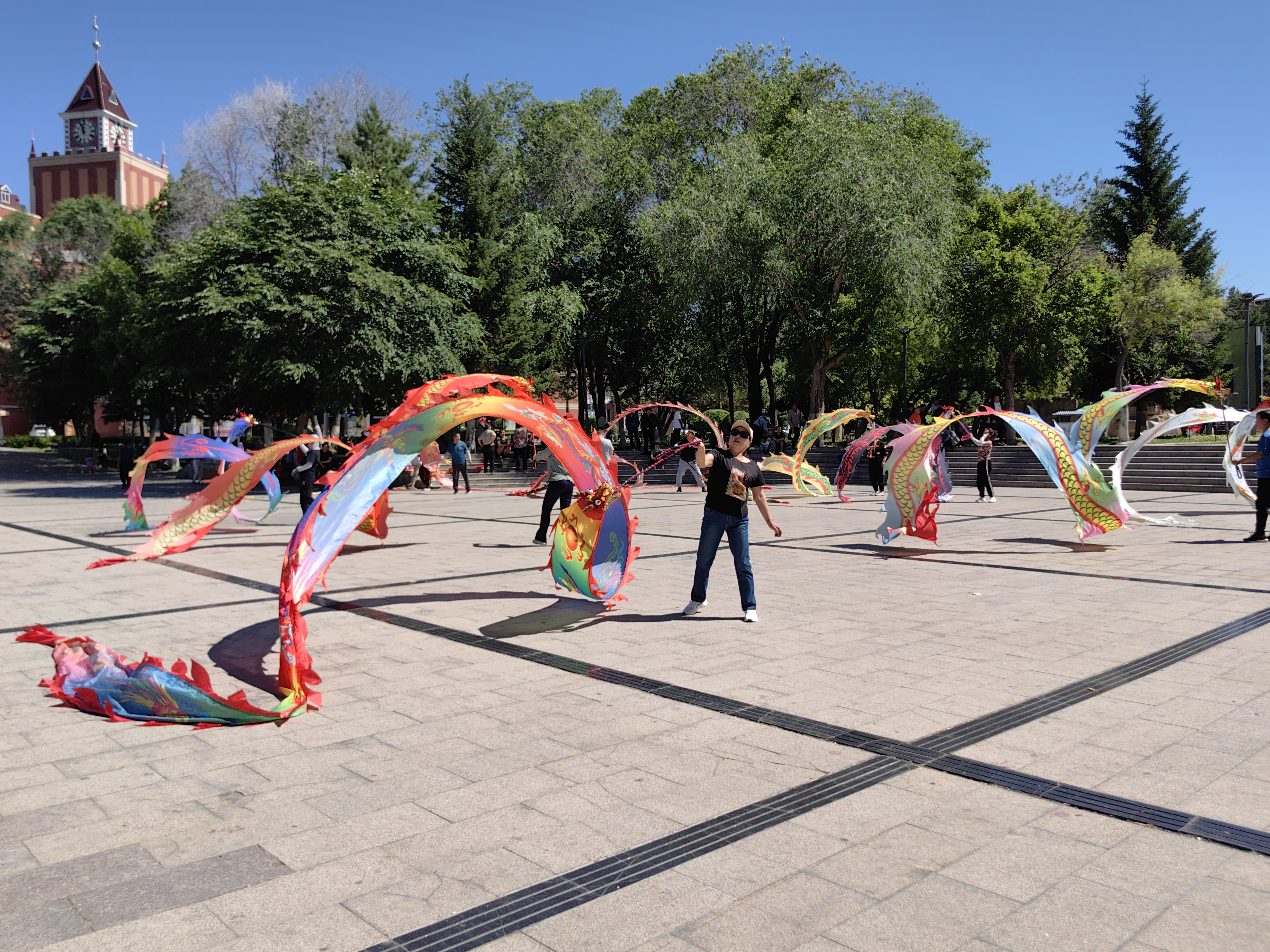 阿勒泰新闻网-阿勒泰地区融媒体中心(实习记者 王景鸿)6月9日,数十位健身龙爱好者在阿勒泰市金山广场齐聚一堂,挥动健身龙。一条条彩龙在他们手中瞬间活起来,时而蜿蜒起伏,时而舞动翻飞,引得众多群众驻足欣赏。