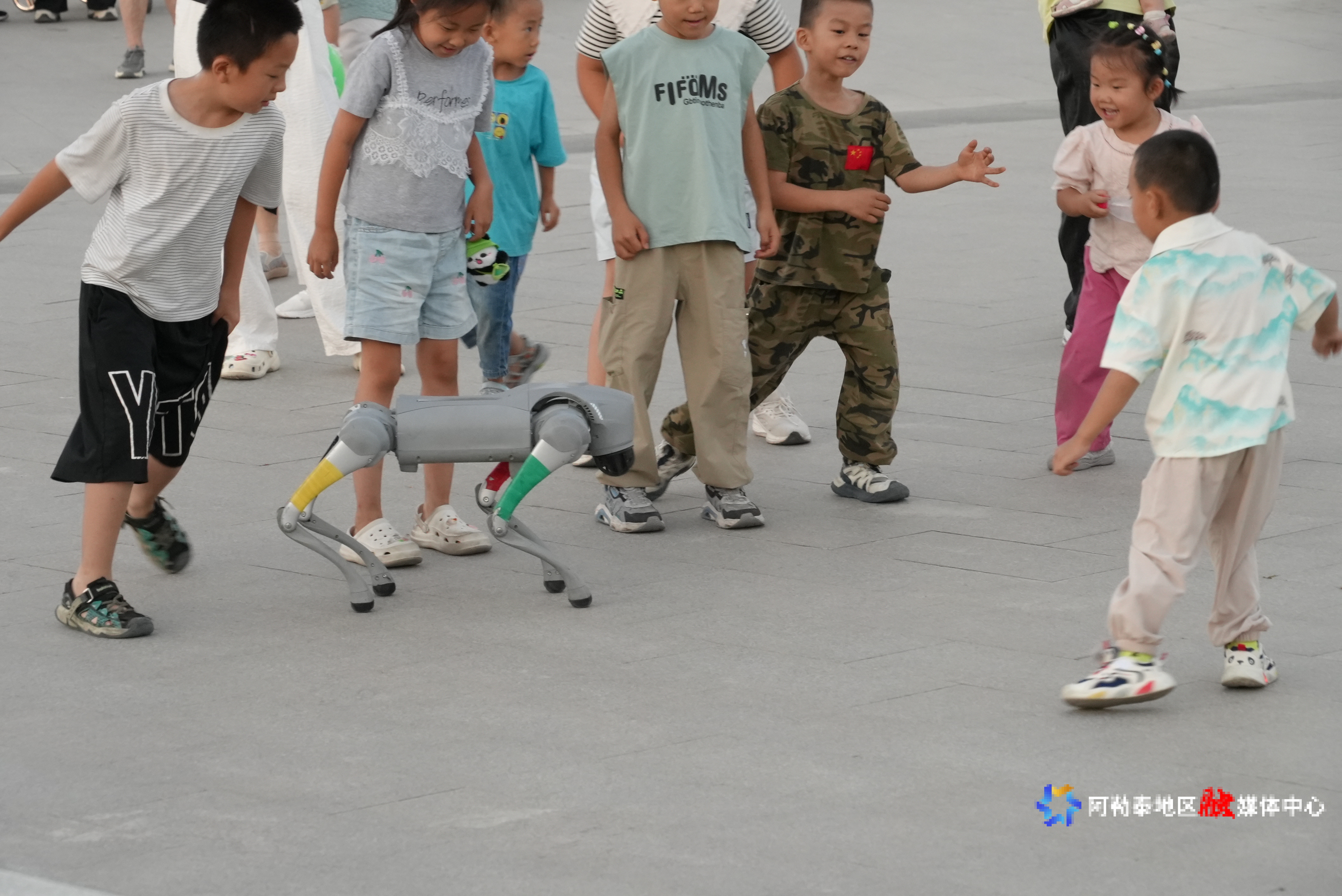 夕阳余晖中,多支广场舞队伍沿着广场步道依次排开,数百名居民随着欢快的旋律舒展肢体,成为暮色里最亮眼的风景线。在广场另一侧,孩子们正围着智能机器狗欢呼雀跃。这些搭载语音交互功能的“电子伙伴”,既能跟随音乐扭动机械臂,又能响应指令做出翻滚、转圈等动作,成为新晋“潮玩”。