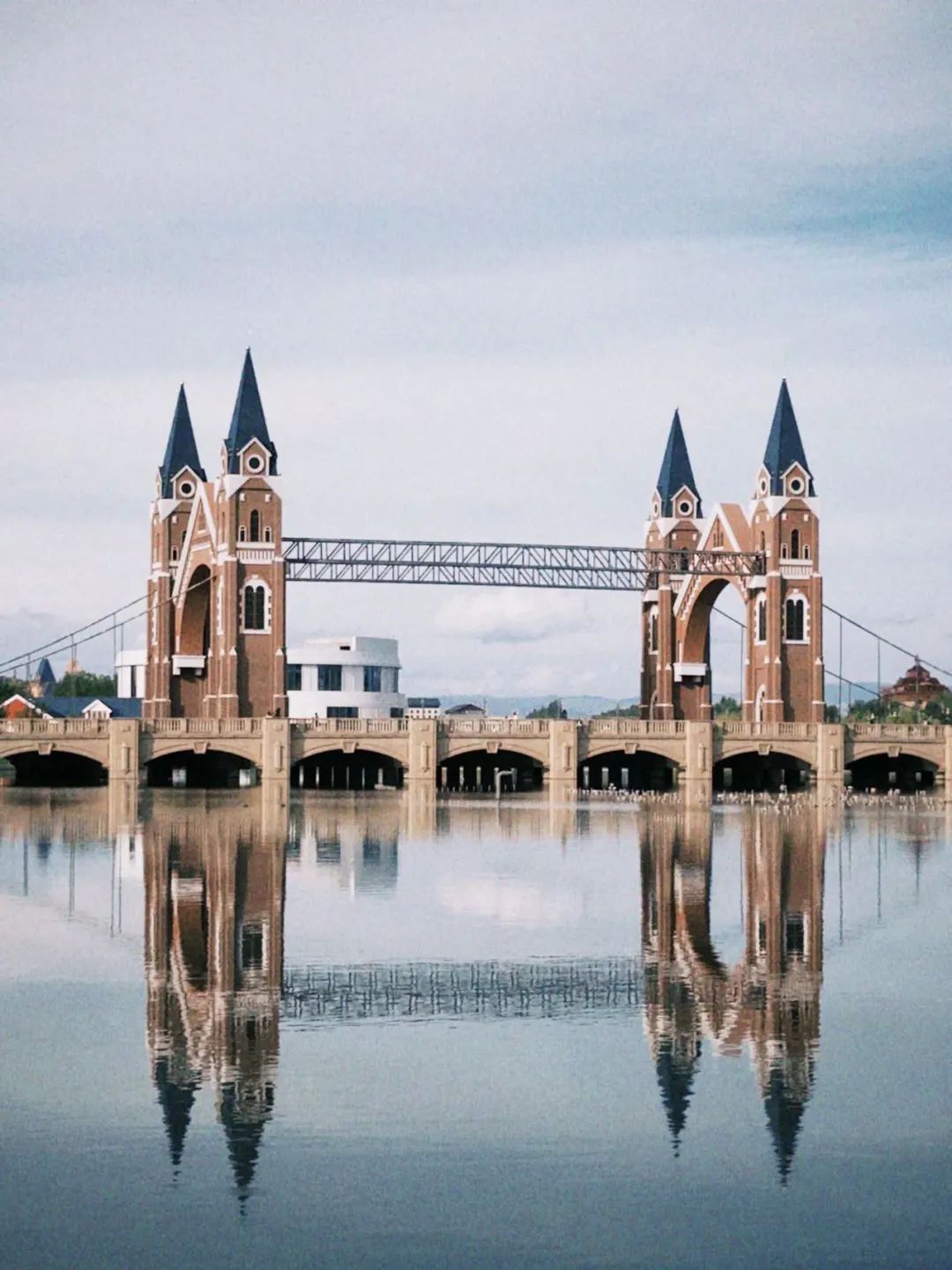 夕阳的余晖尽情地洒在眼前的俄罗斯风情步行街上。红的、黄的、蓝的、绿的墙体,因余晖而多了一层金黄色的纱衣。纱衣若隐若现,透着肌理与质感。身处河畔,遥望高耸入云的雪山,高山草甸的青草芬芳与自然多层重叠,毫无违和感。远景、中景、近景,独特的油画构图,瞬间在眼前展示和勾勒。刚刚在纪念馆看到的图片、实物,记录着千帆竞渡高峰时期,生活于此的人们。岁月如白驹过隙,时空在两鬓留白,却不曾忘记中俄友谊的情深谊长。