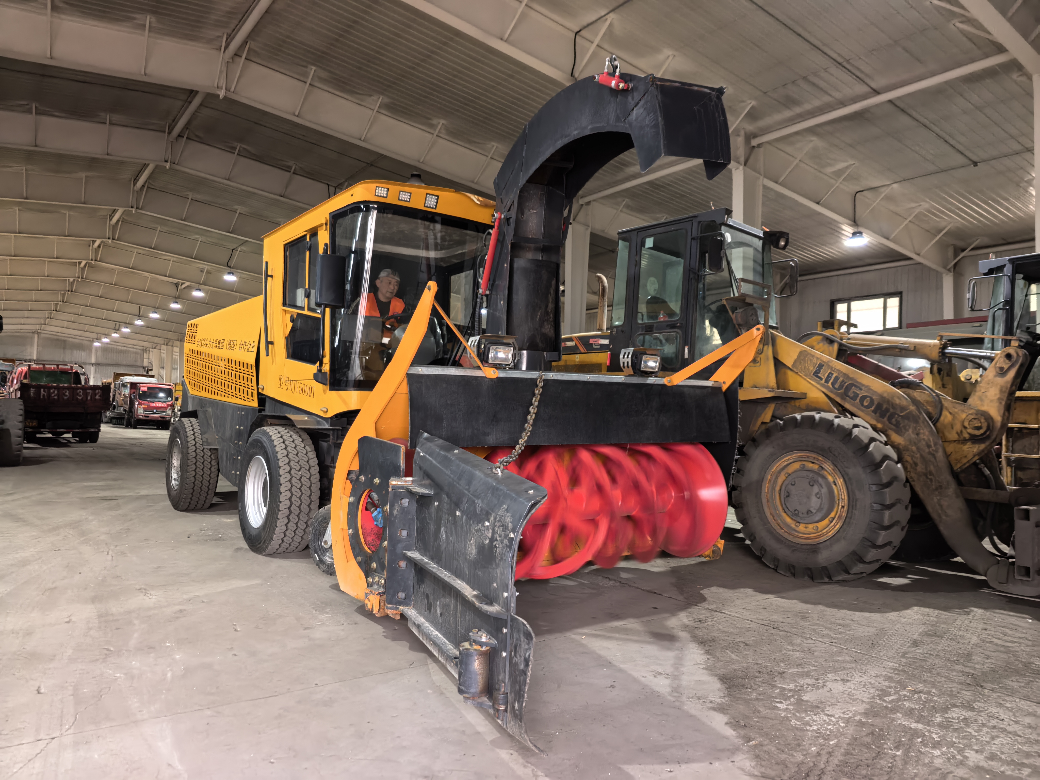 10月27日,记者在阿勒泰市环卫清雪机械厂看到,车库内多台大型除雪车整齐停放,工作人员正有序开展设备维修养护工作,通过现场实操测试前置滚刷、雪铲等核心装置的运转状态,确保设备性能稳定。同时,针对新招聘的除雪车驾驶员,专项开展“老带新”业务培训,重点规范设备操作流程,强化安全作业意识,提升驾驶操作水平。