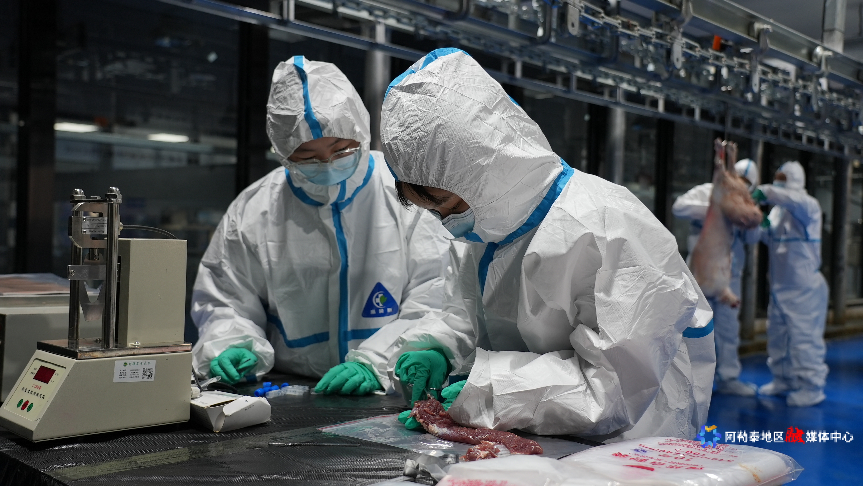 新疆农业大学动物科学学院教授、博士生导师臧长江阐述了研究的更深层次目标:“此次带领研究生和博士生团队在富蕴县主要开展了两项核心实验:第一项深入探究放牧与舍饲模式本身对阿勒泰羊肉品质的影响,重点分析肌肉中各类脂肪酸、氨基酸、风味物质、滋味物质及膻味物质的变化;第二项则聚焦‘不同能量和蛋白水平’的饲粮对阿勒泰羊肉品质的作用机制,通过调整精粗比日粮,系统研究其对羊只生长性能、屠宰性能以及肉中各类营养成分的影响。所有研究旨在解析影响阿勒泰羊肉品质的关键因素,并为其品质提升提供核心科学数据支撑。”