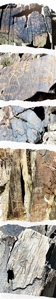 杜拉特岩画在哪儿?南出新疆阿勒泰市区,从红墩镇街道左折,驰向汗德尕特蒙古族乡。途中路西,两座相隔不远的戈壁丘陵间,许多竖起的岩石块面上刻满了古朴生动的图案。此处距阿勒泰市区仅二十余公里。