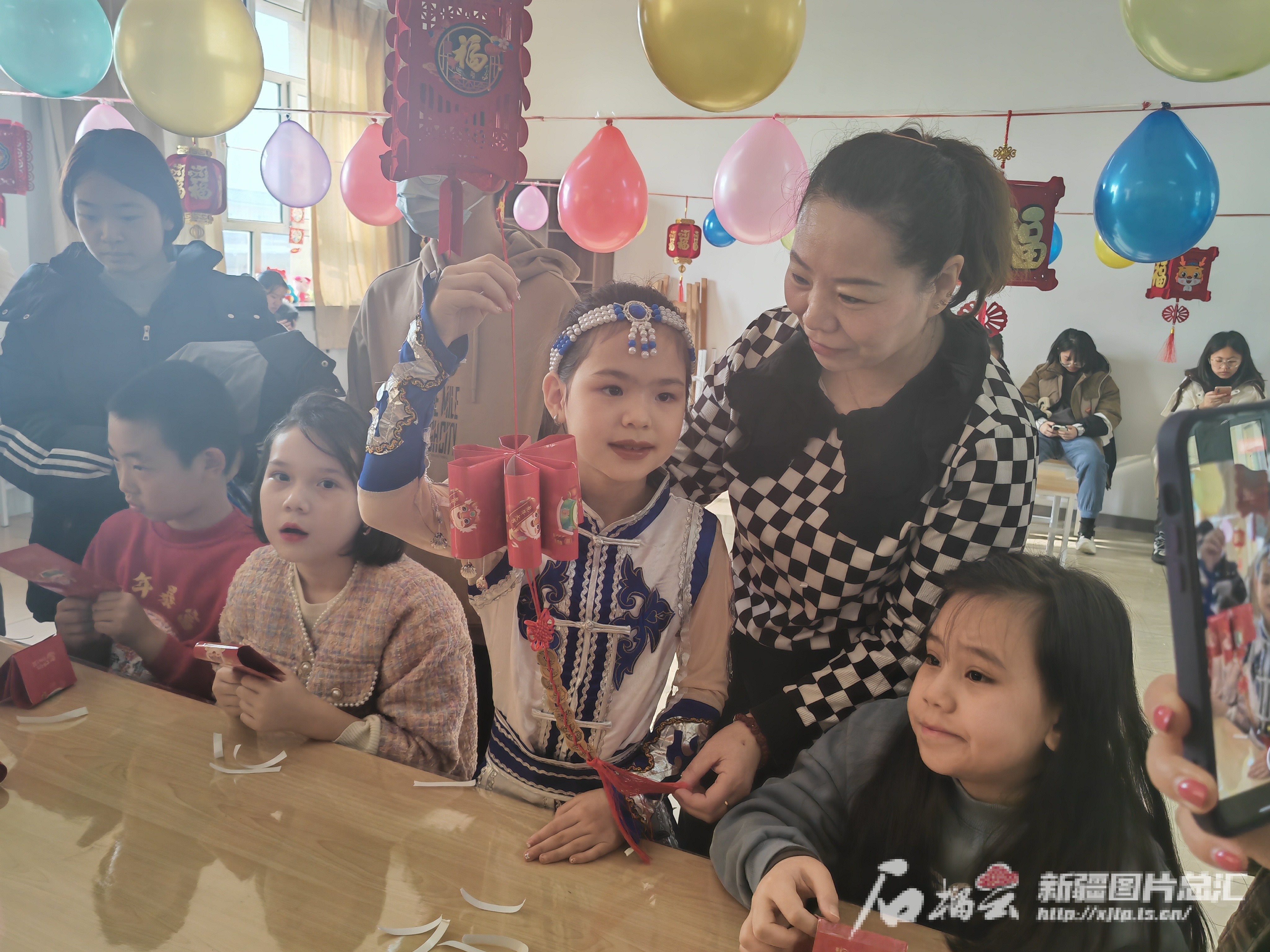 今年8岁的爱莎乃提在台上跳舞,她的“于妈妈”于新莲在台下录视频,小姑娘刚跳完舞,于新莲就迎了上去。“跳得真好,我录视频了,回去给你妈妈看……”听着于新莲的鼓励,爱莎乃提很是开心,“谢谢于妈妈,等会儿做灯笼时你要帮我哦……”看到女儿抱着于新莲的胳膊撒娇,阿里木·肉孜微笑着看着她俩。