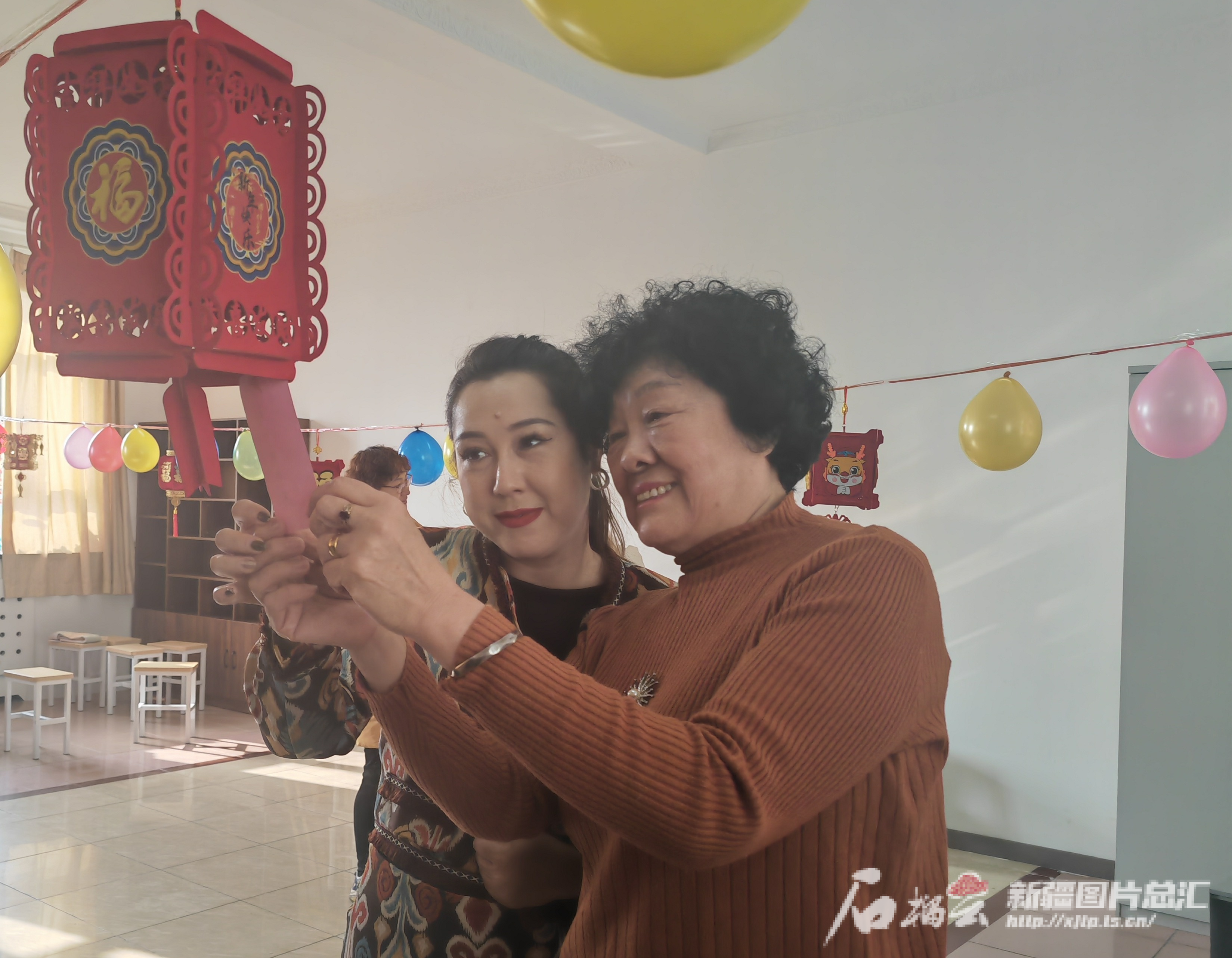 2月23日,走进乌鲁木齐市水磨沟区水塔山街道邻里中心,一盏盏火红的灯笼,一条条鲜艳的彩带和串串气球将会议室装扮得喜庆鲜亮。花苑社区民族团结大院的居民们相约来到这里,赏歌舞、做灯笼、猜灯谜、吃元宵,欢乐的笑声传出好远好远……