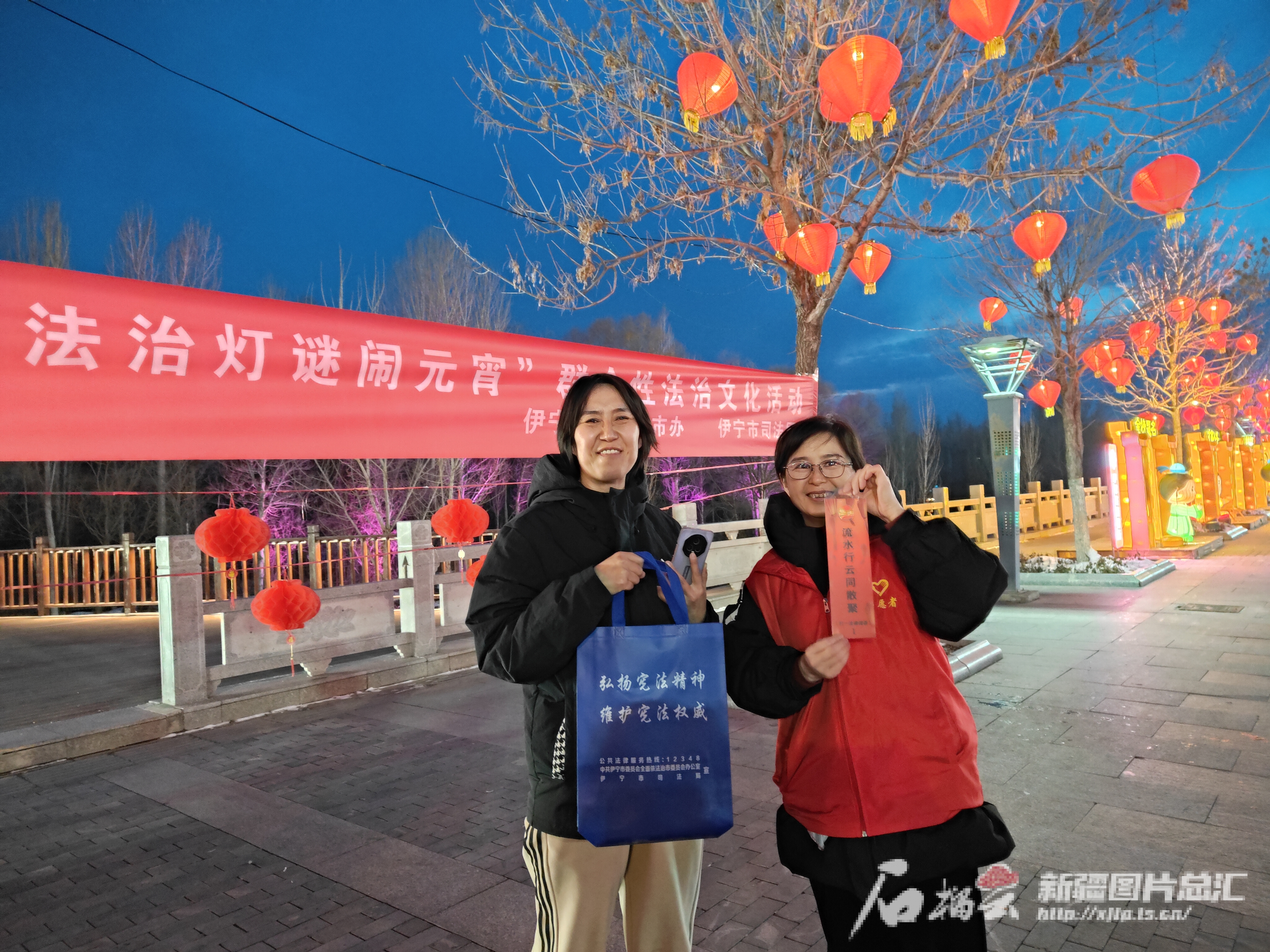 2月23日晚,伊犁河畔,猜对灯谜的群众收获了一份“法治礼包”。杨苗苗 摄