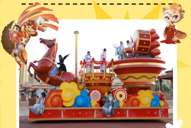 其中,15:00为缤纷假日大型主题花车巡游,19:30为中秋主题花车巡游。