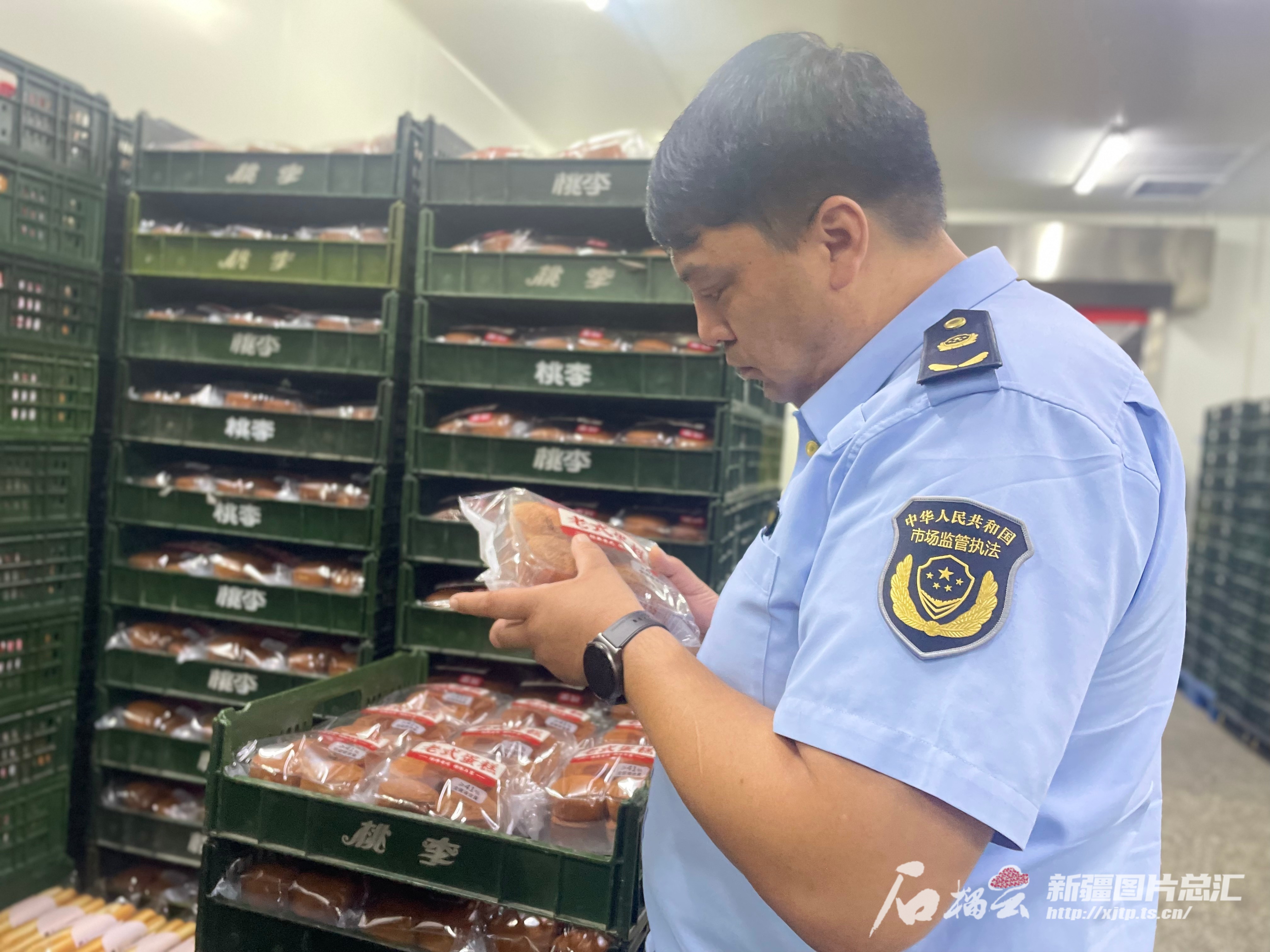 9月10日,执法人员在乌市一家面包生产企业检查。石榴云/新疆日报记者 索蓉芝摄
