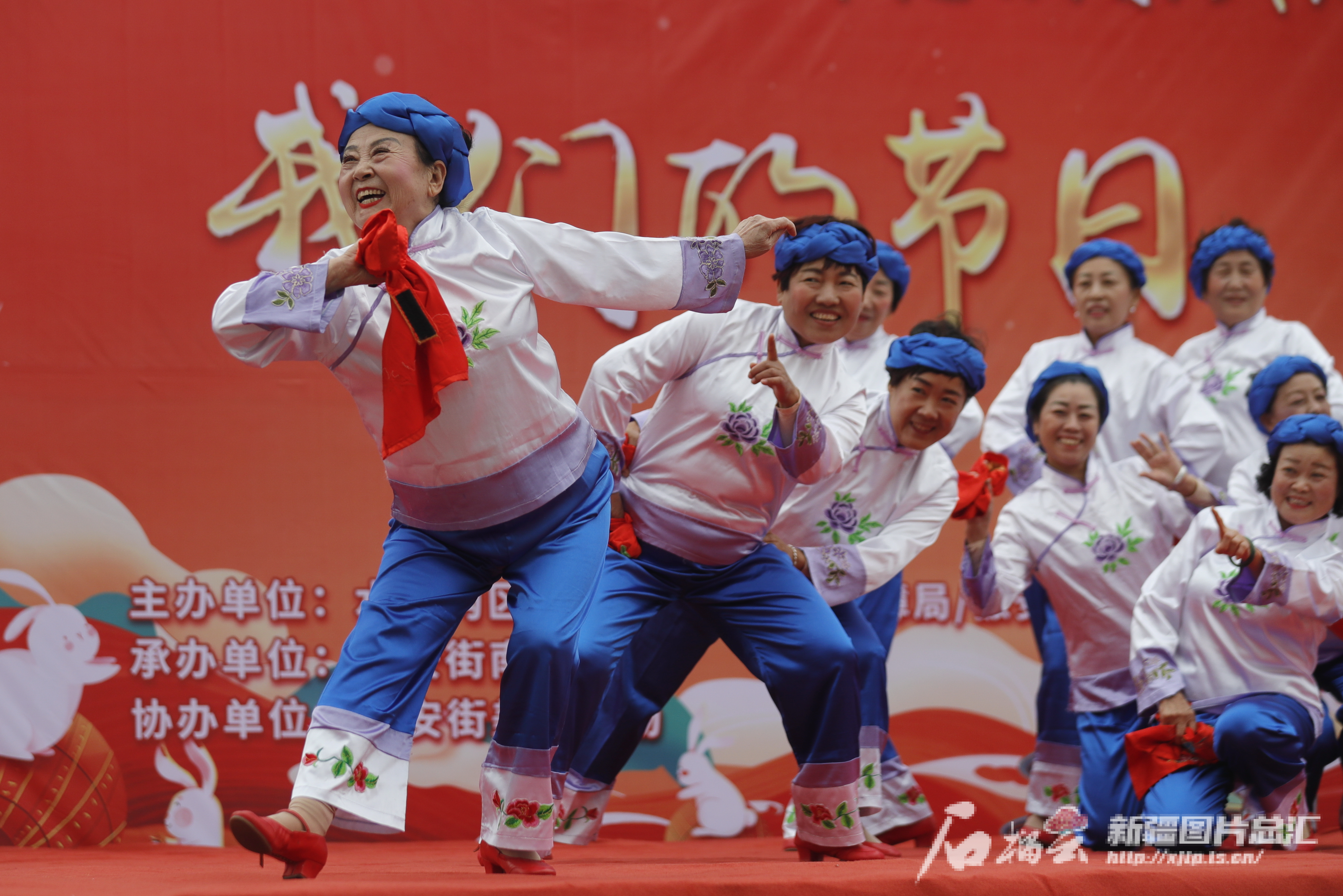 9月13日,振安街街道演出队正在为观众表演舞蹈《老妈妈》。天山网-新疆日报记者 秦鹏摄