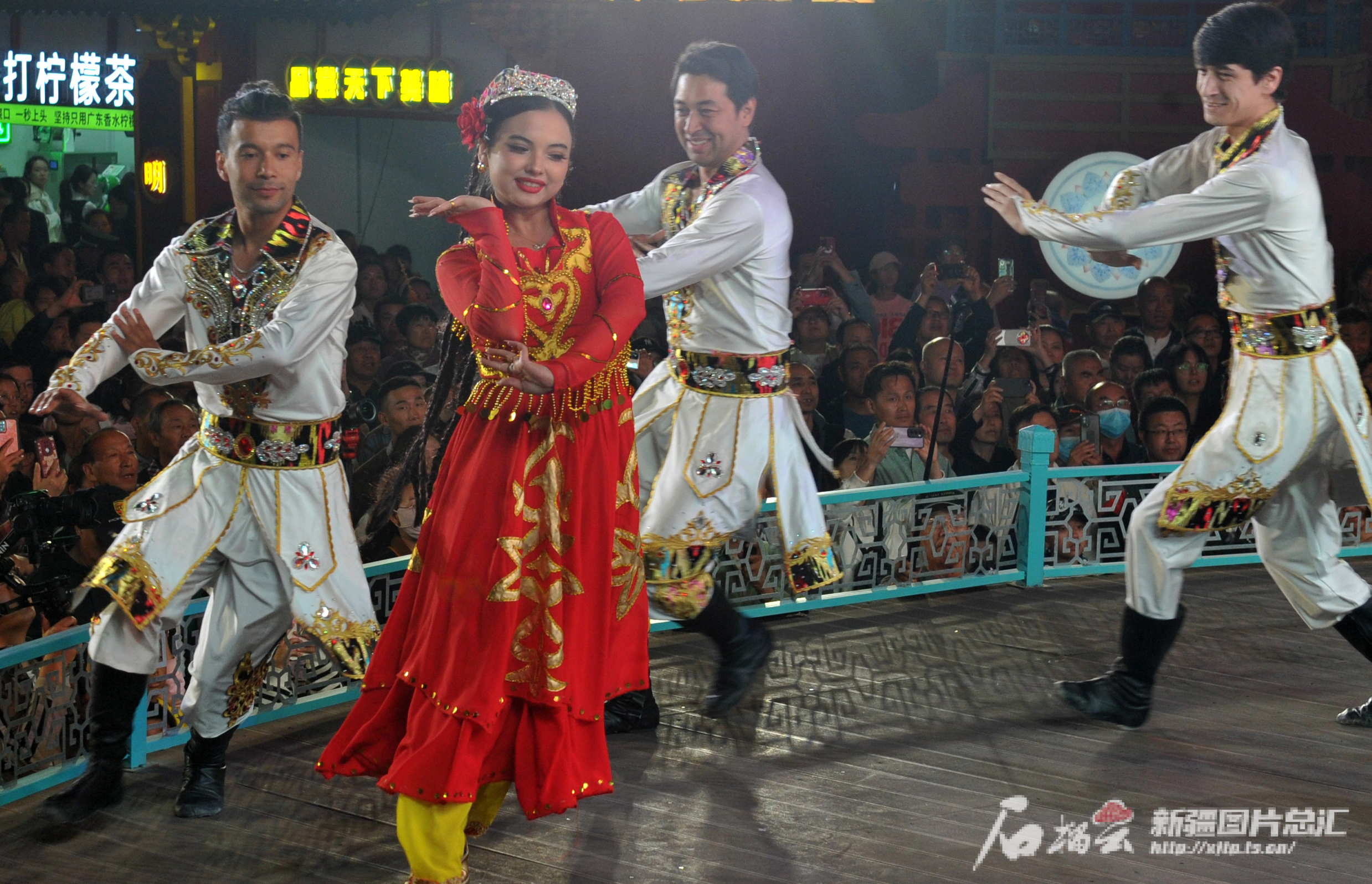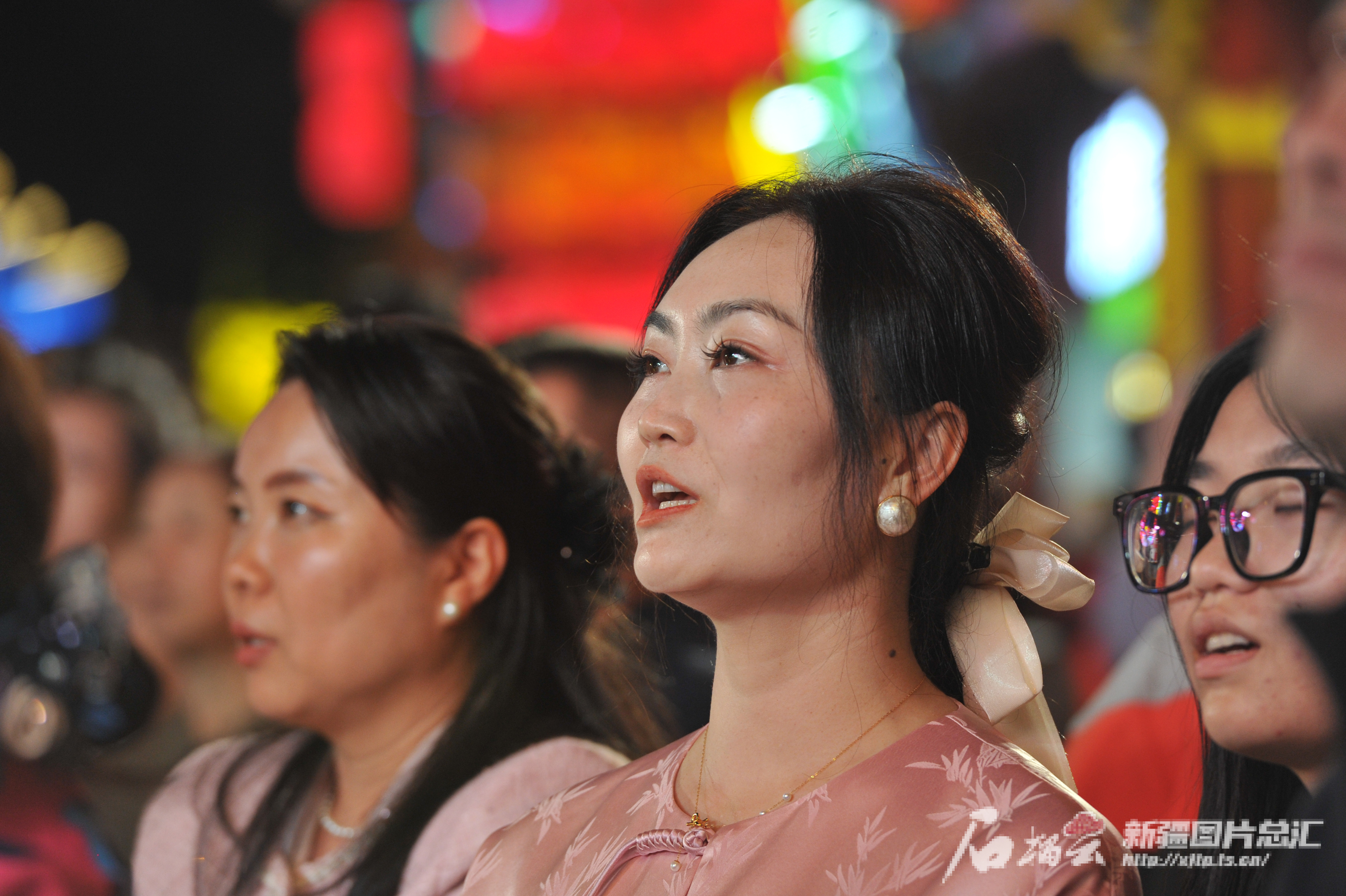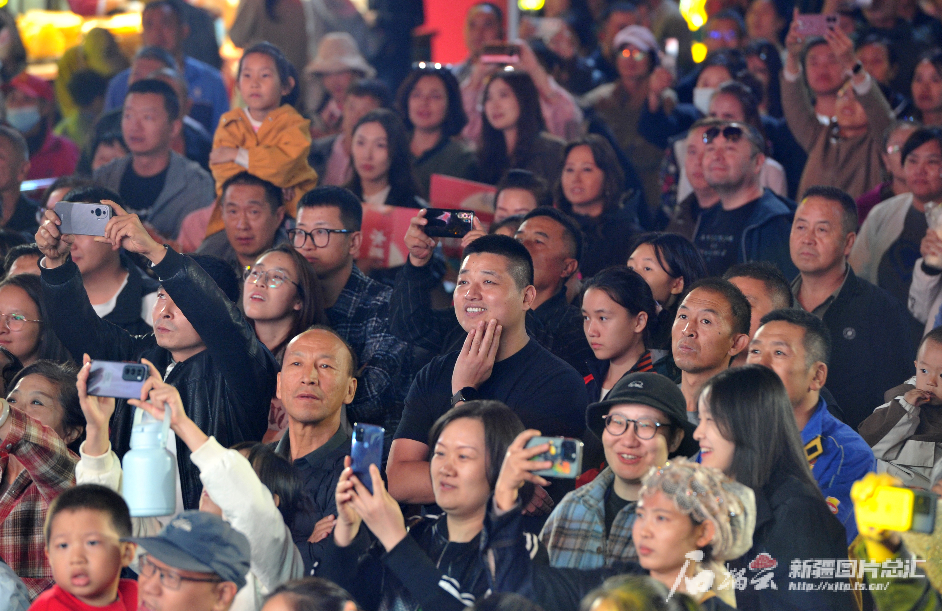 9月16日晚,游客在天山明月城观看精彩的文艺节目。