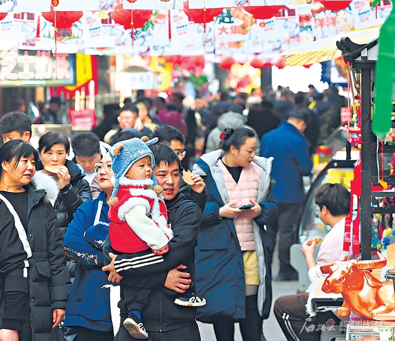 1月30日,市民在乌鲁木齐县水西沟镇闲来小镇宽窄巷子文旅步行街游玩。春节假期,乌鲁木齐市各消费场所人头攒动,假日经济热力十足。陈岩 摄