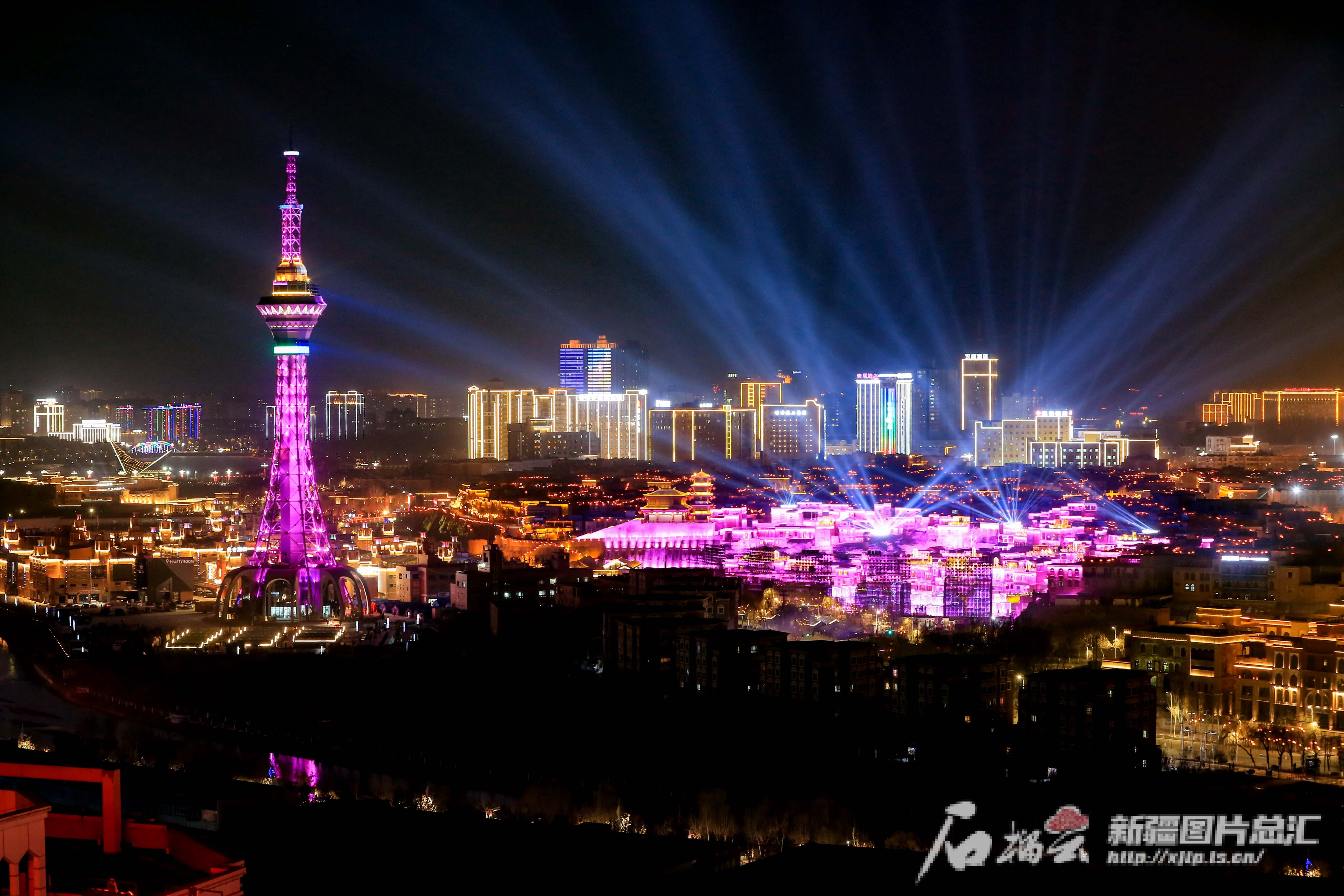 中央广播电视总台《2024年春节联欢晚会》新疆喀什分会场夜景。资料图