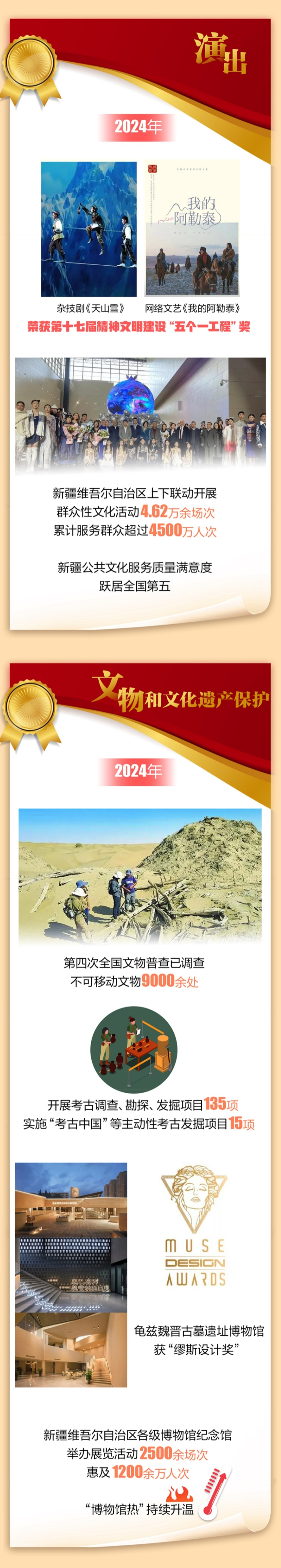 总台春晚分会场首次设立在新疆,举办首届中国新疆民间艺术季,电视剧《我的阿勒泰》形成现象级的传播效应,新疆音乐人狼戈作词作曲和演唱的《苹果香》在短视频平台爆火,由新疆艺术学院舞蹈学院参演的舞蹈《秧BOT》在总台春晚舞出秧歌的独特韵味……2024年以来,一项项深入推进文化润疆的措施落地见效,新时代文艺繁花满枝。