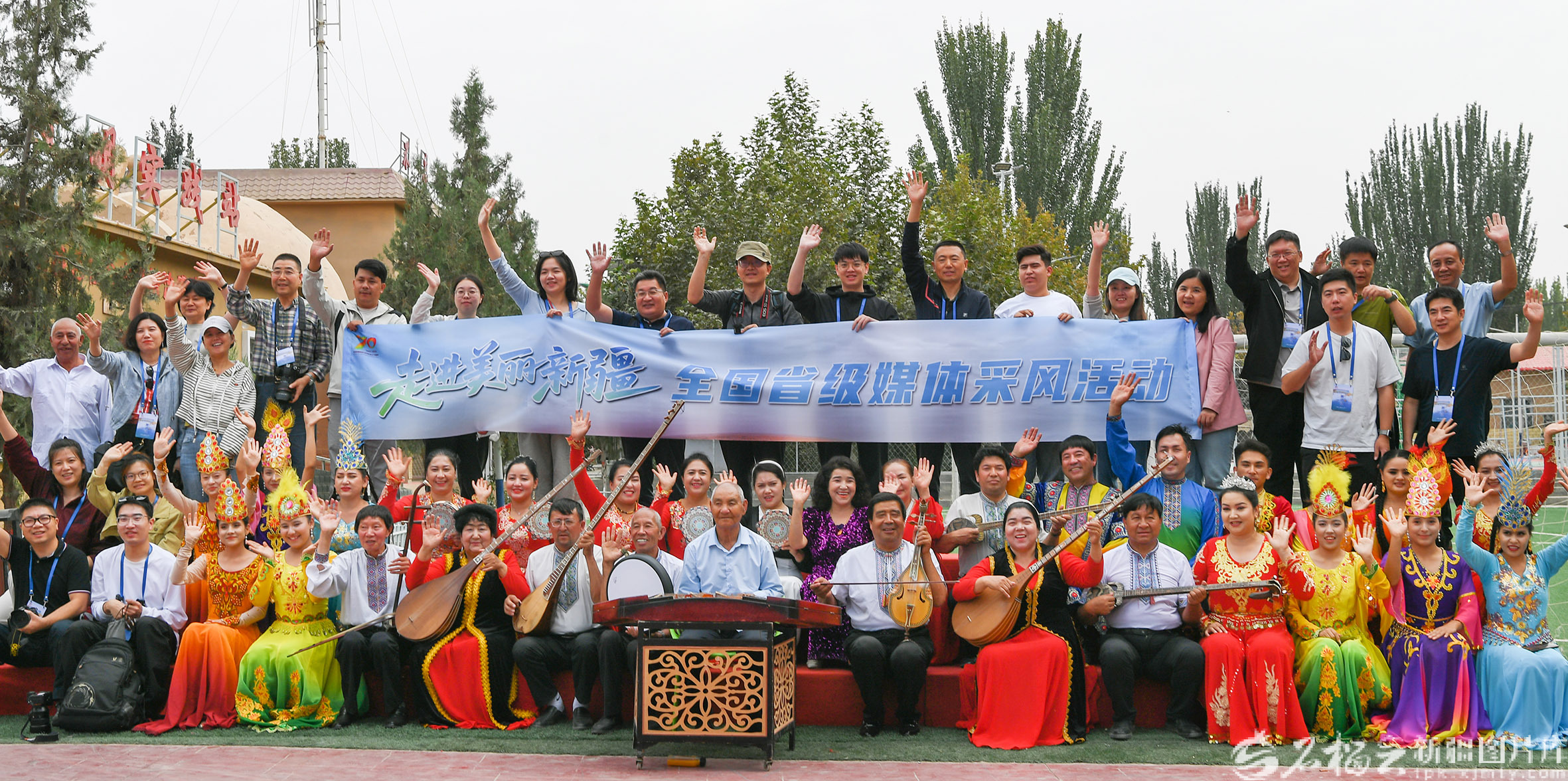 9月19日,“走进美丽新疆”全国省级媒体采风活动采访团在英吉沙县土陶村和村民一同合影留念。天山网-新疆日报记者 约提克尔·尼加提摄