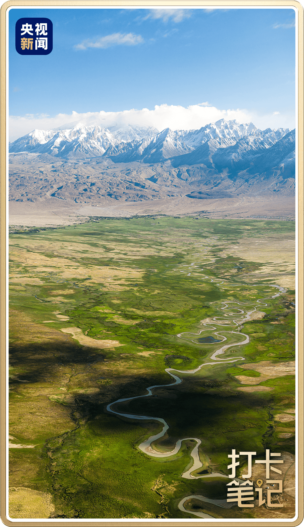 △帕米尔高原上的慕士塔格峰与塔合曼湿地。