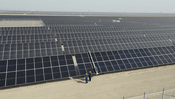 如今由太阳能光伏板汇聚成“蓝色海洋”
