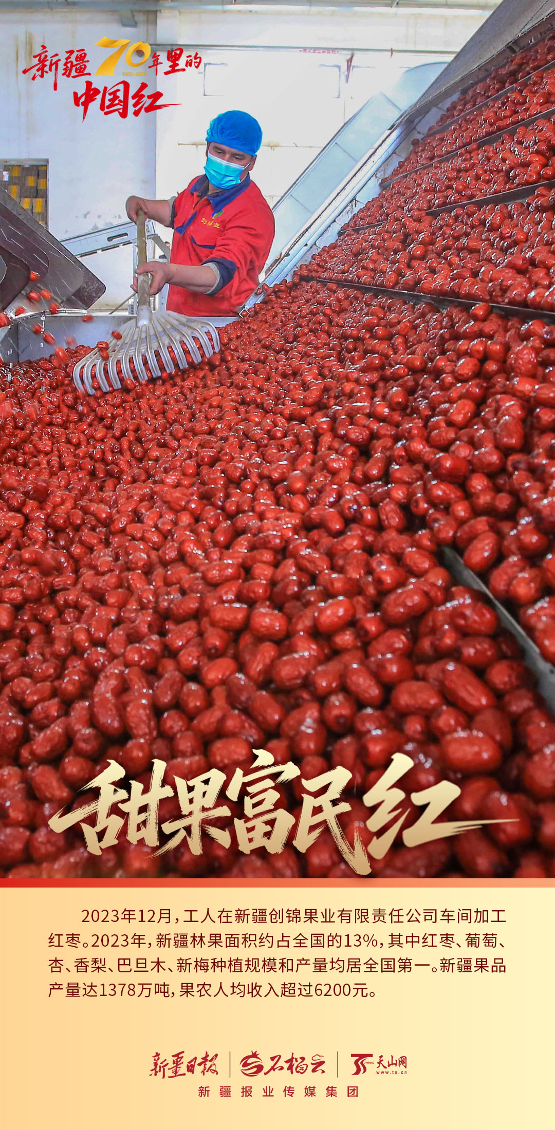 70年昂扬奋进,从丰收盛景到丝路虹光,从科技燎原到文化共融,新疆以跨越之姿绘就的盛世长卷上,每一寸都浸染着“中国红”的炽热图腾。
