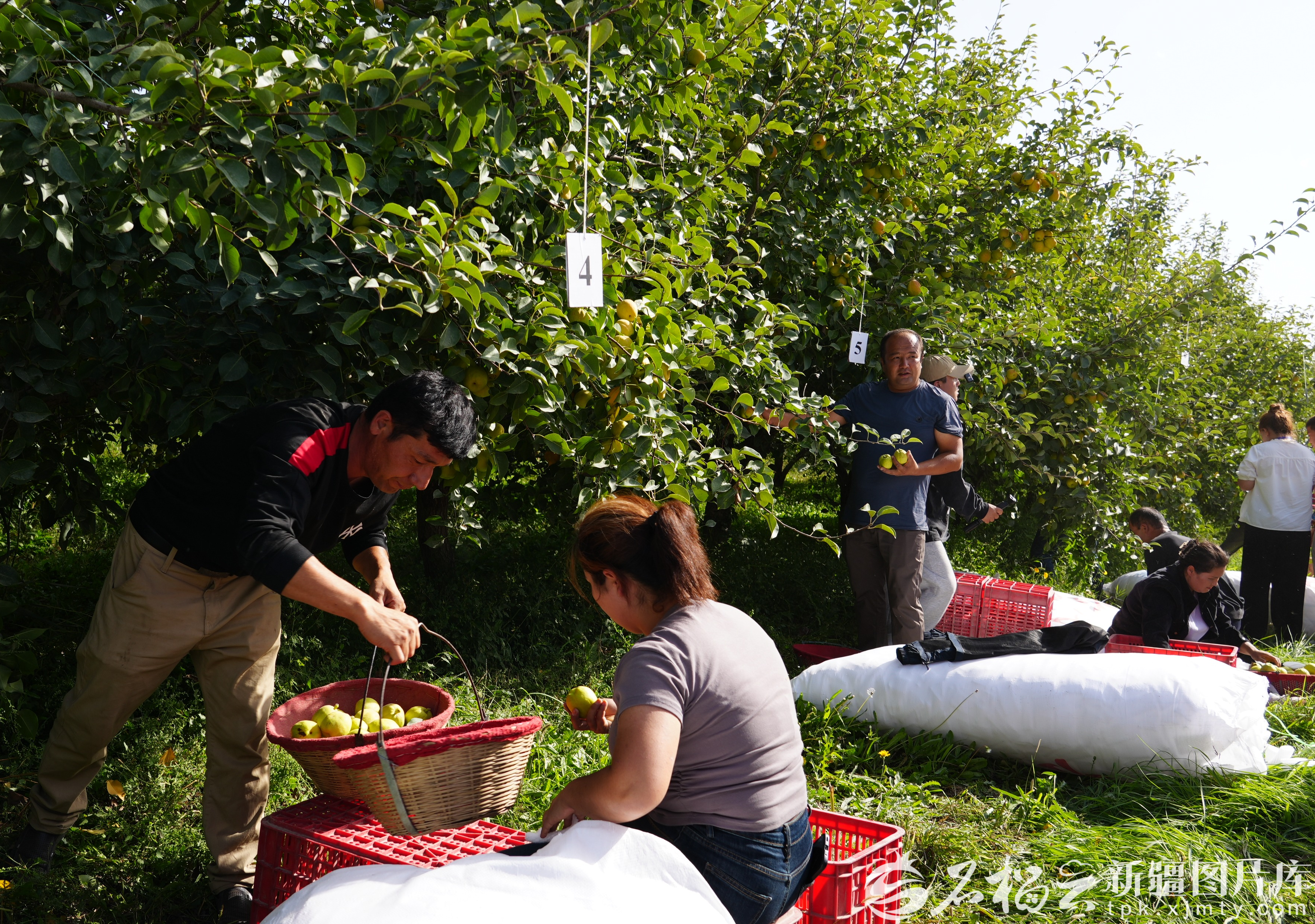 9月21日,库尔勒市香梨采摘争霸赛在阿瓦提乡向前农场举办。孜拉拉·阿不力孜摄