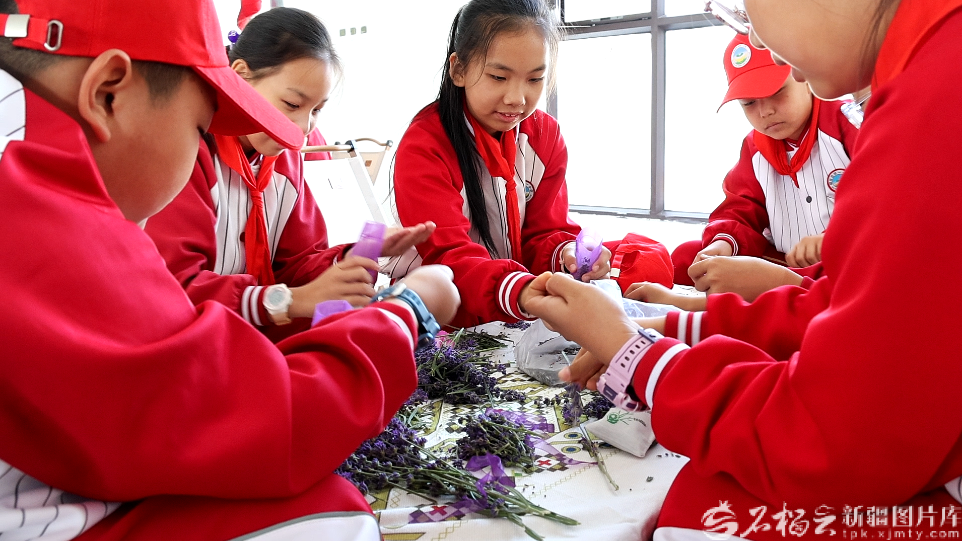 10月25日,在霍城县芦草沟镇漫心忘忧谷景区,来自特克斯县参加研学的学生在制作薰衣草香囊。图/新疆漫心忘忧谷文化旅游发展有限公司提供