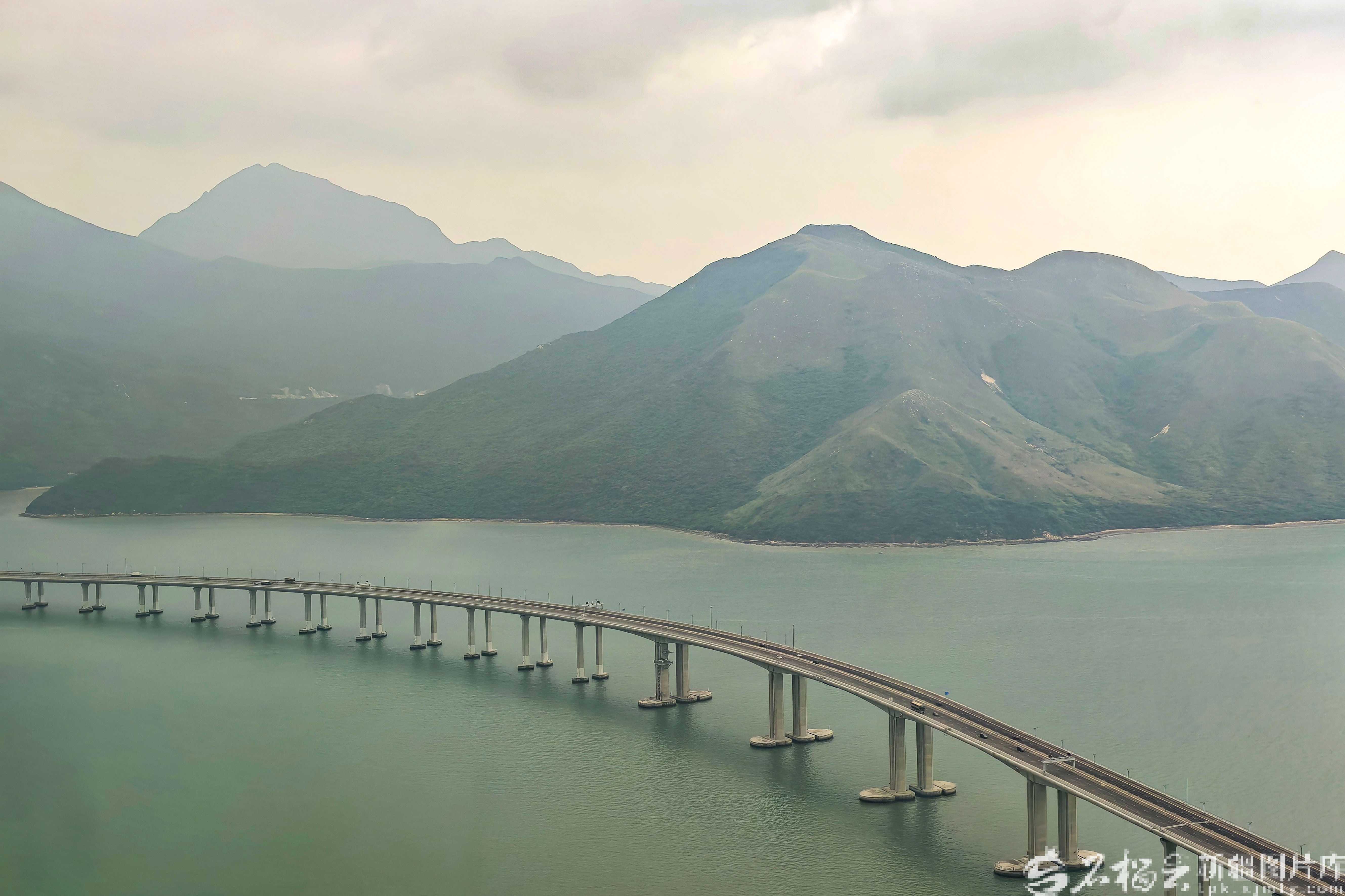 11月2日,记者在乌鲁木齐飞往香港的CZ603航班上拍摄的港珠澳大桥。