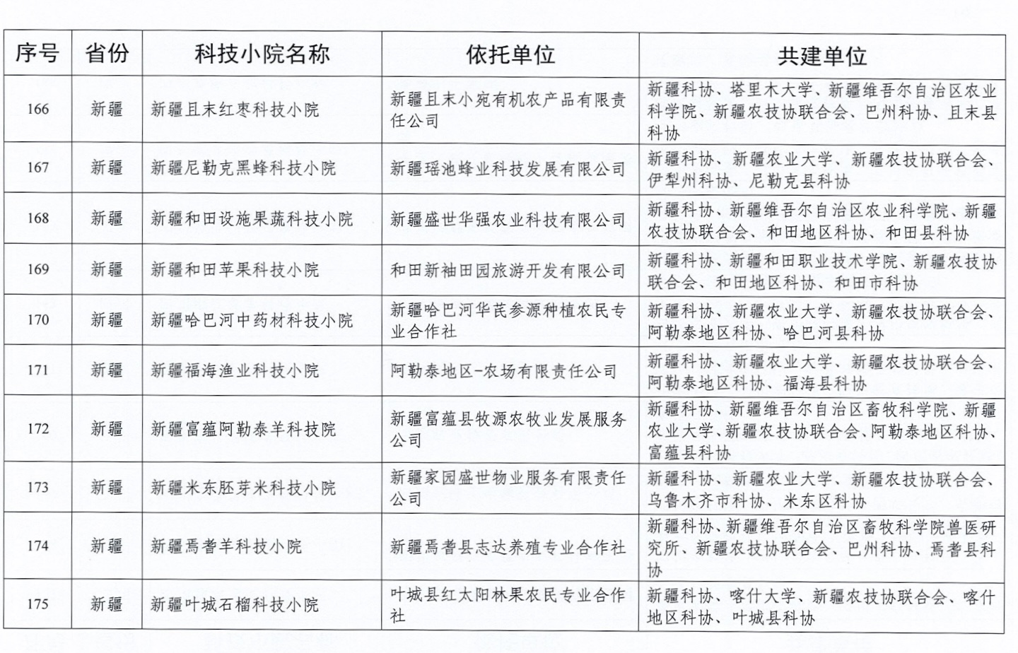天山网-新疆日报讯(记者谢慧变报道)近日,中国农村专业技术协会公布新一批科技小院名单,新疆新增30家。截至目前,全疆累计建成中国农技协科技小院101家,涵盖100家区内小院和1家中亚海外科技小院,覆盖了全疆所有县(市、区)。
