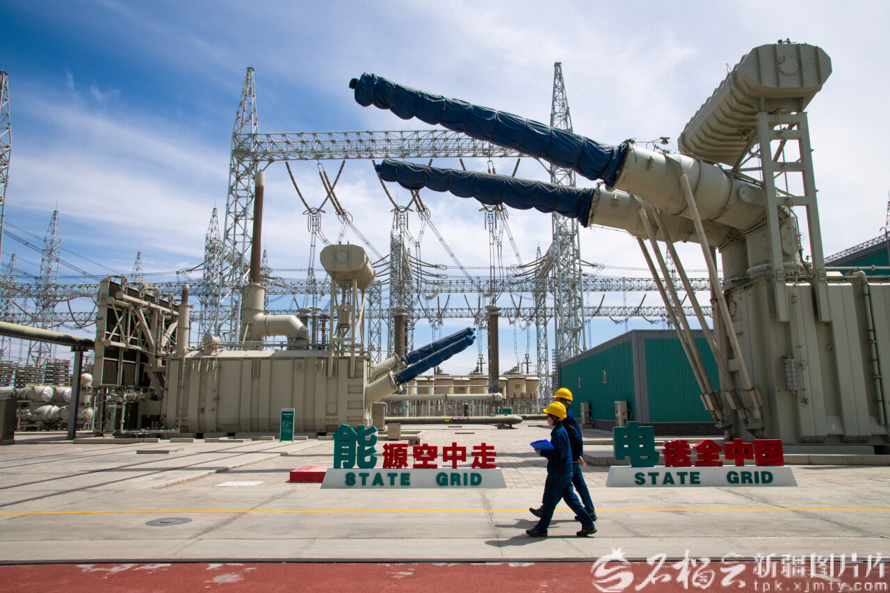 5月8日,航拍新疆准东经济技术开发区国网新疆超高压分公司昌吉—古泉±1100千伏特高压直流输送工程昌吉换流站。何龙摄