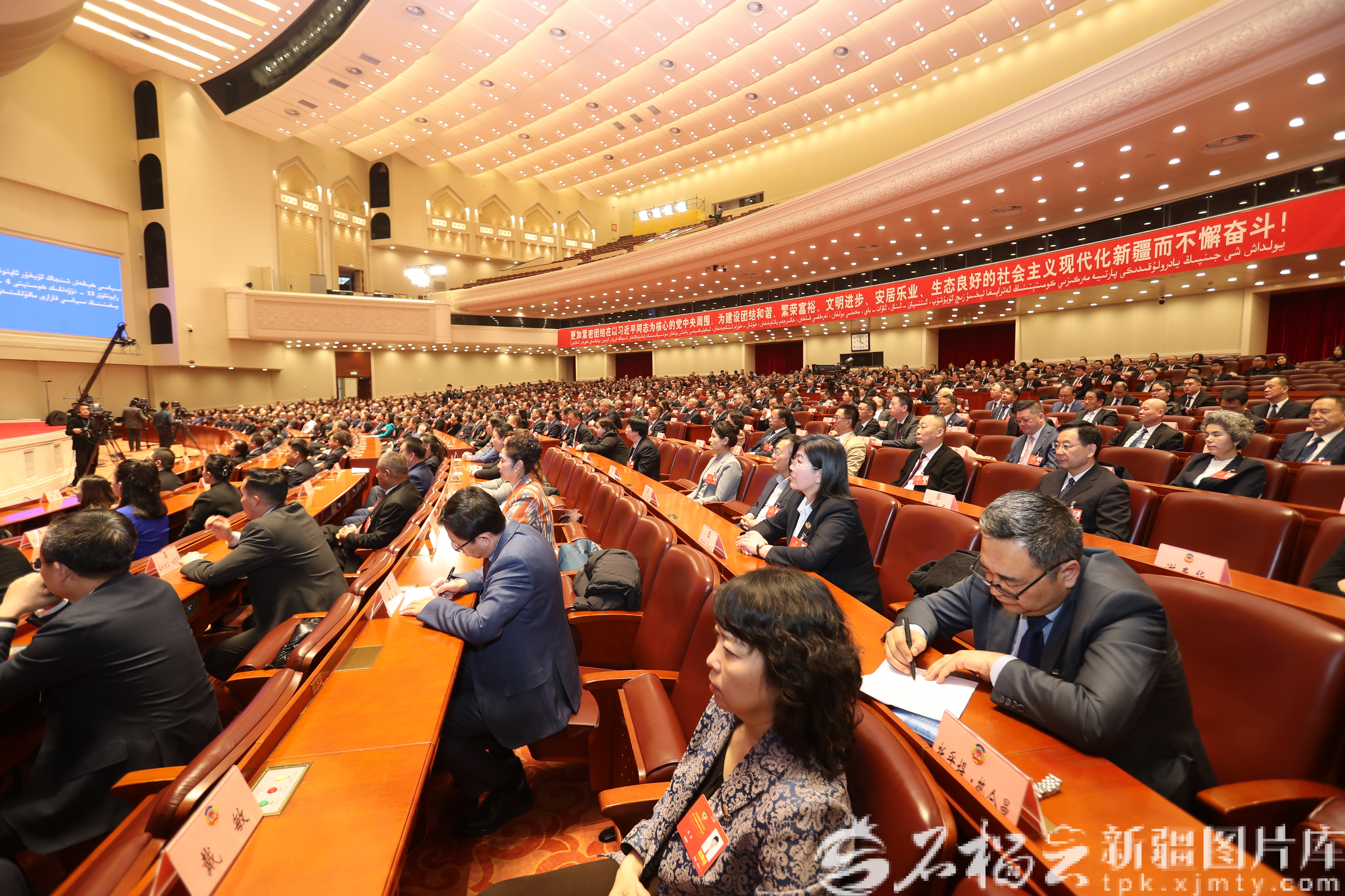 1月30日上午,自治区政协十三届四次会议圆满完成各项议程,在新疆人民会堂闭幕。图为会议现场。天山网-新疆日报记者 邹懿摄