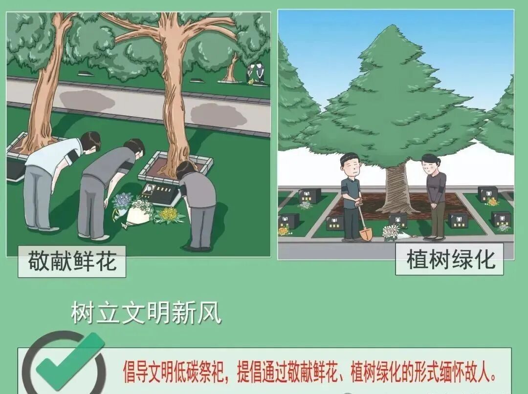 《殡葬管理条例》第三十一条 推行不占地或者少占地的安葬方式,倡导使用绿色环保丧葬用品,减少墓地石化、硬化。