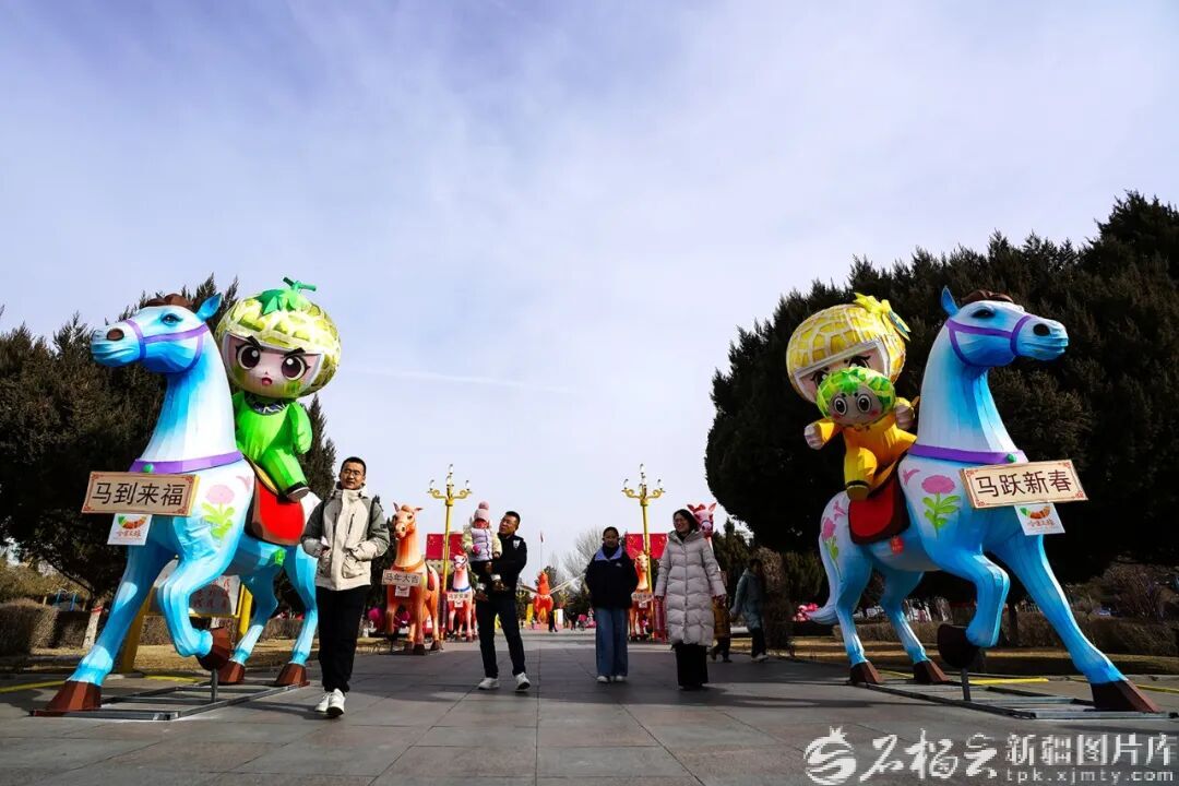 正月初二,年味正浓。哈密市街头巷尾张灯结彩、喜气盈门,“灯耀中华 福润哈密”主题的新春花灯璀璨绽放,绘就出一幅“石榴花开贺新春”的动人图景。