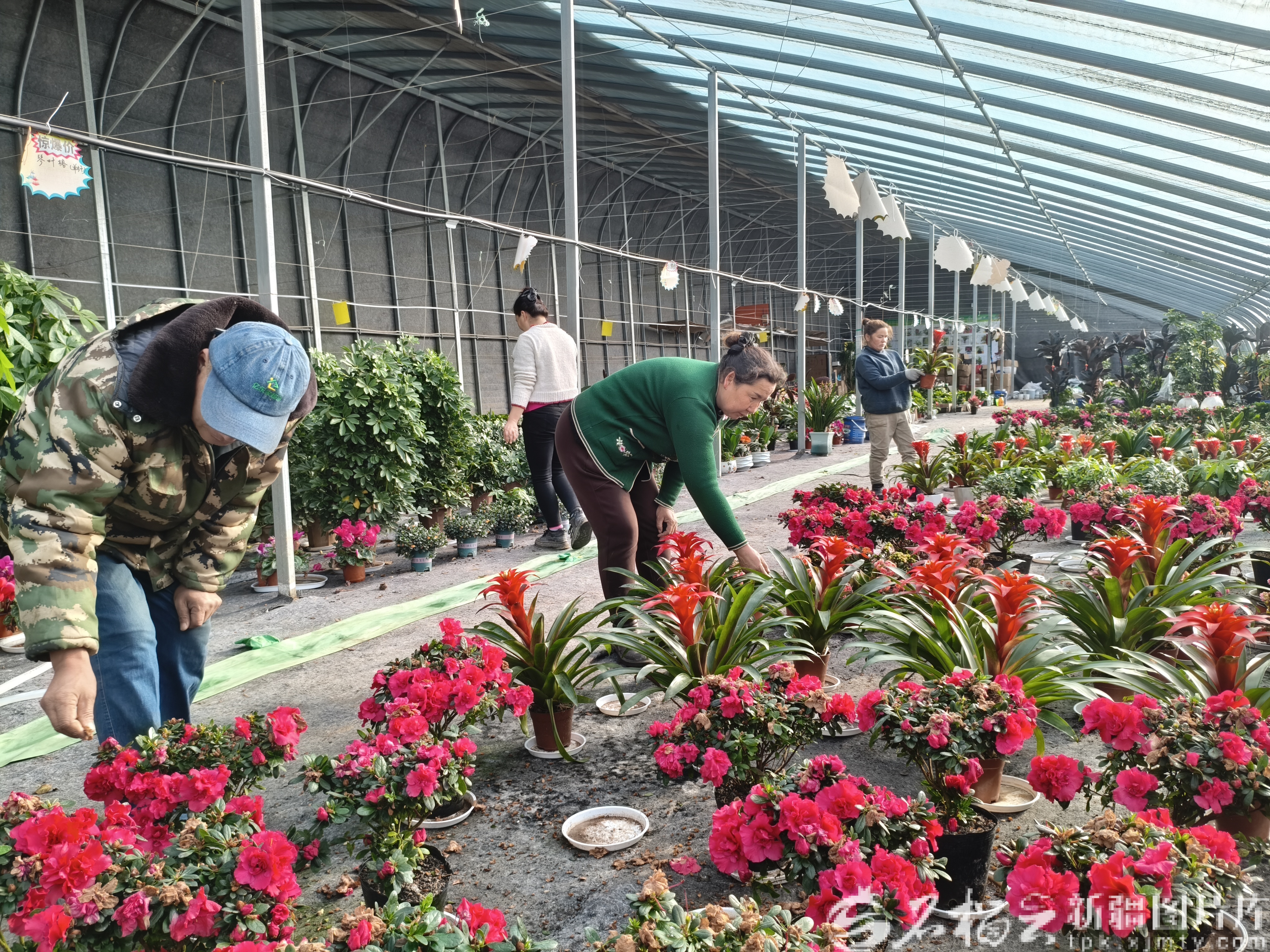 2月18日,轮台县现代设施农业产业园,工人在花卉大棚干活。天山网-新疆日报记者 张冬梅摄