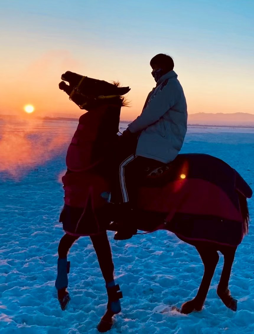 2月25日,朝霞穿透清晨的雾气,照在雪地上,勾勒出如梦似幻的光影。纳尔苏骑着马在雪地上奔驰。忽然,他勒住缰绳,“嘶”的一声,马头冲着朝阳高高扬起。这一刻的美景,和他年轻高大的身影被及时定格进镜头里。