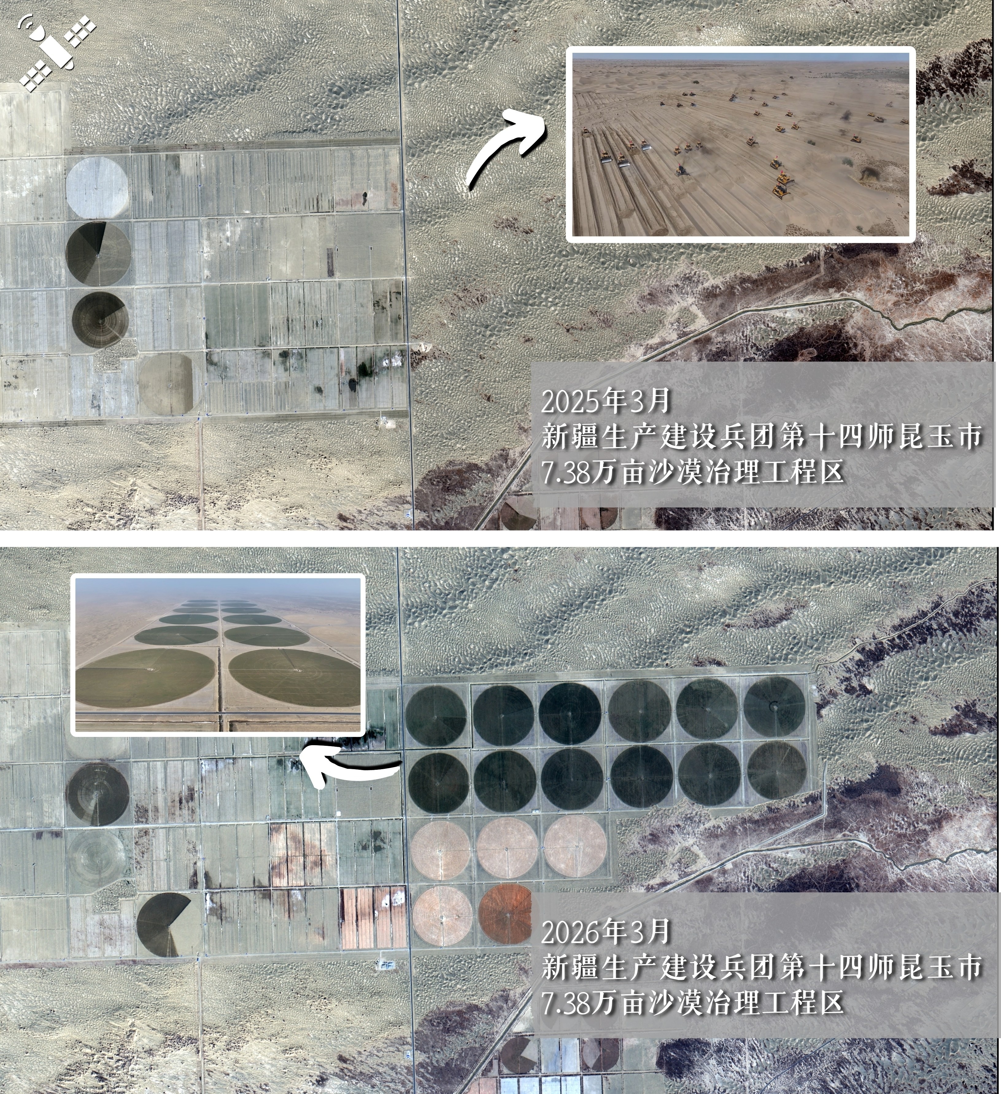 从太空看中国:只用了一年,沙漠边缘“绘就”绿色“同心圆”